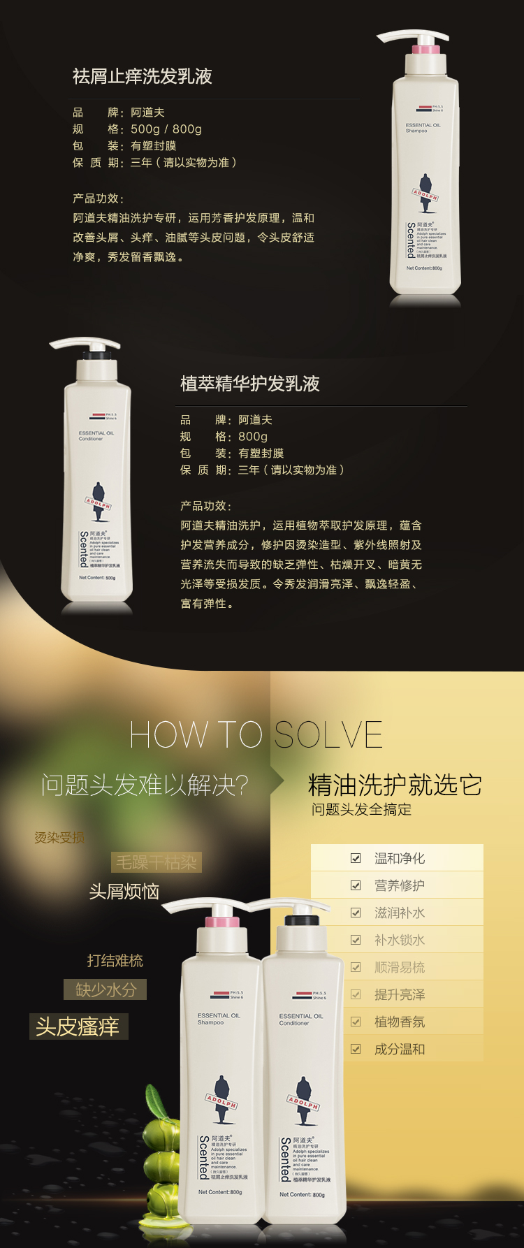 阿道夫植萃精华护发乳液800ml