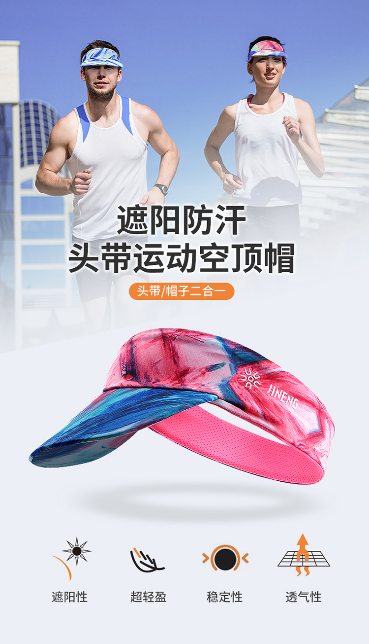 积能跑步空顶帽太阳帽运动遮阳帽子男鸭舌帽马拉松女帽速干