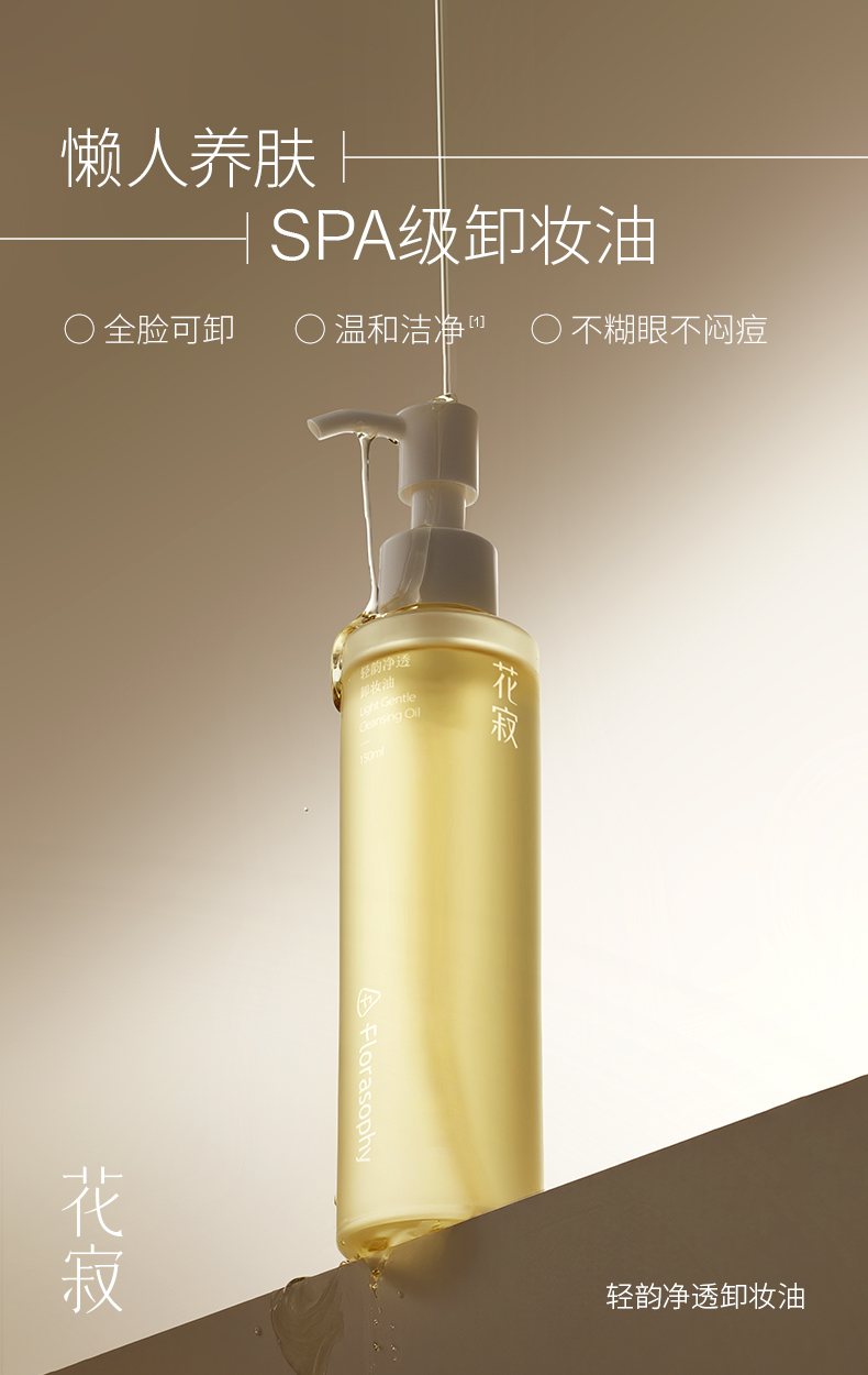 花寂轻韵净透卸妆油彩妆眉眼唇干皮以油养肤150ml【赠送卸妆油10ml*3+舒缓乳液面膜1片】【福利品】