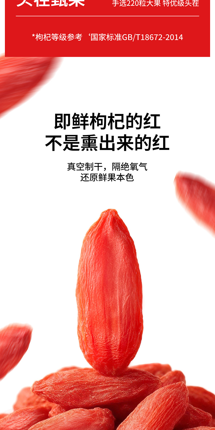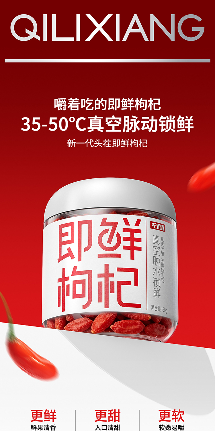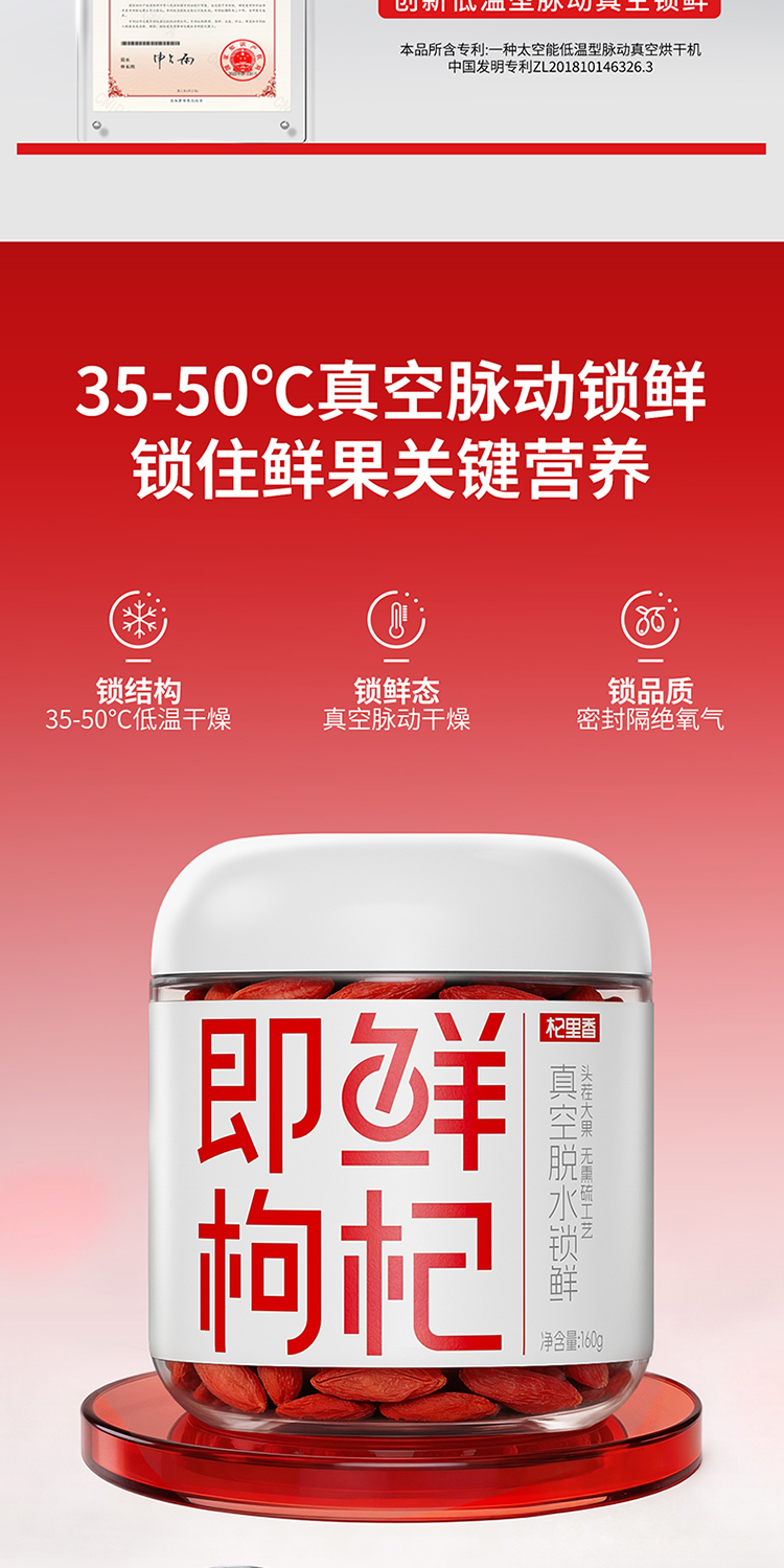杞里香160g、250g圆罐220粒头茬即鲜枸杞,宁夏红枸杞真脉动专利锁鲜工艺头茬大果枸杞特优级手选