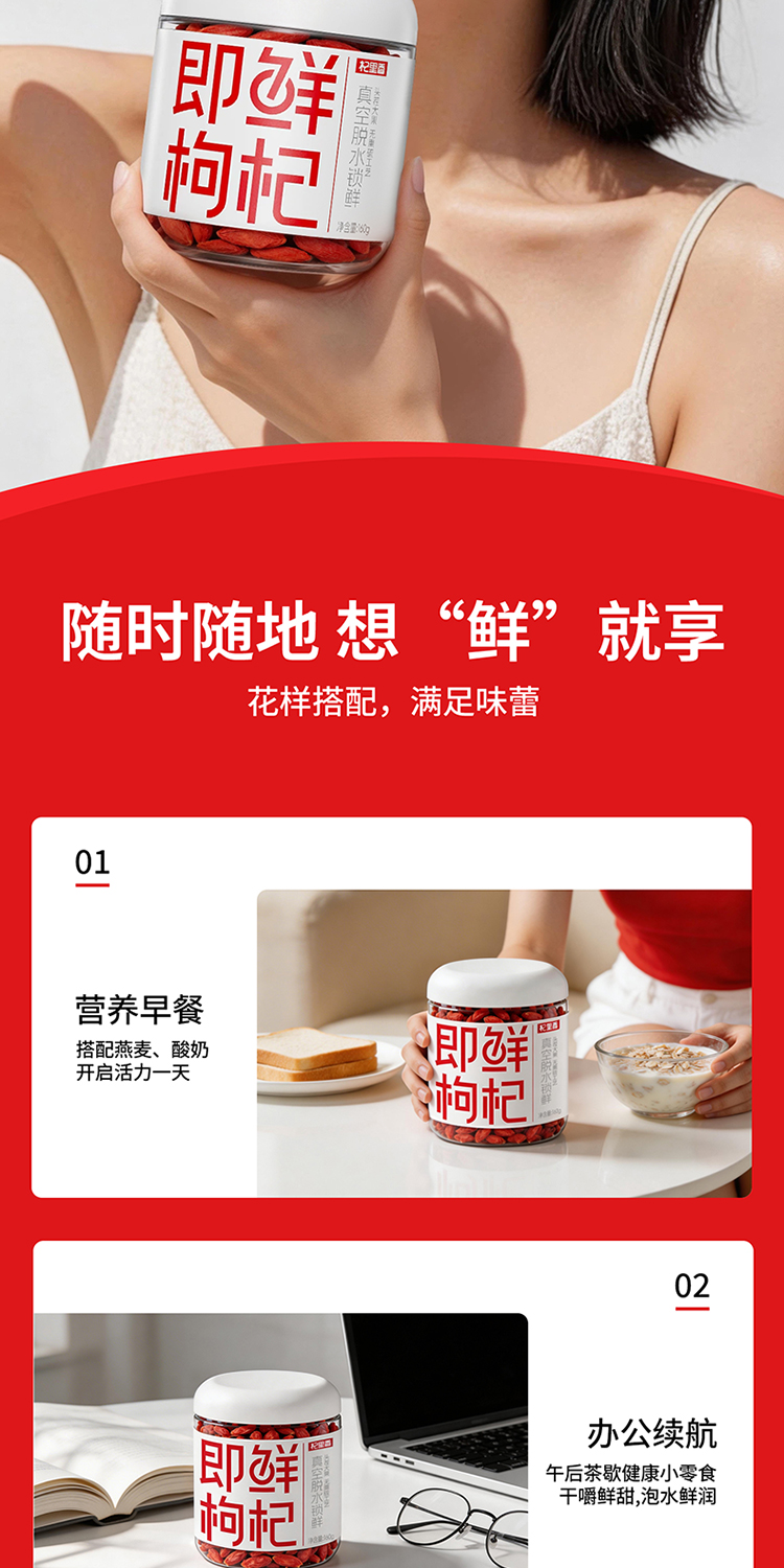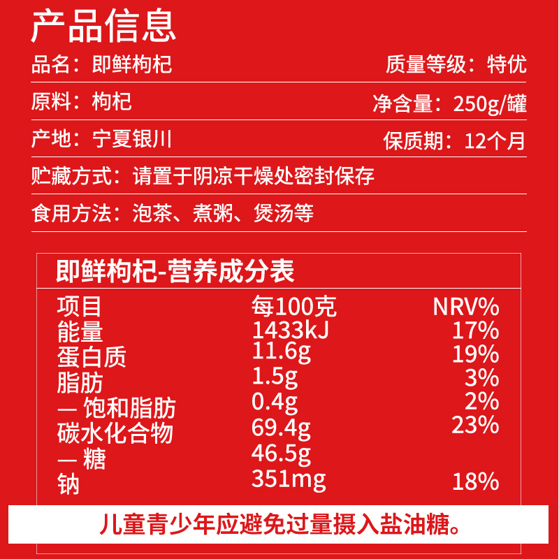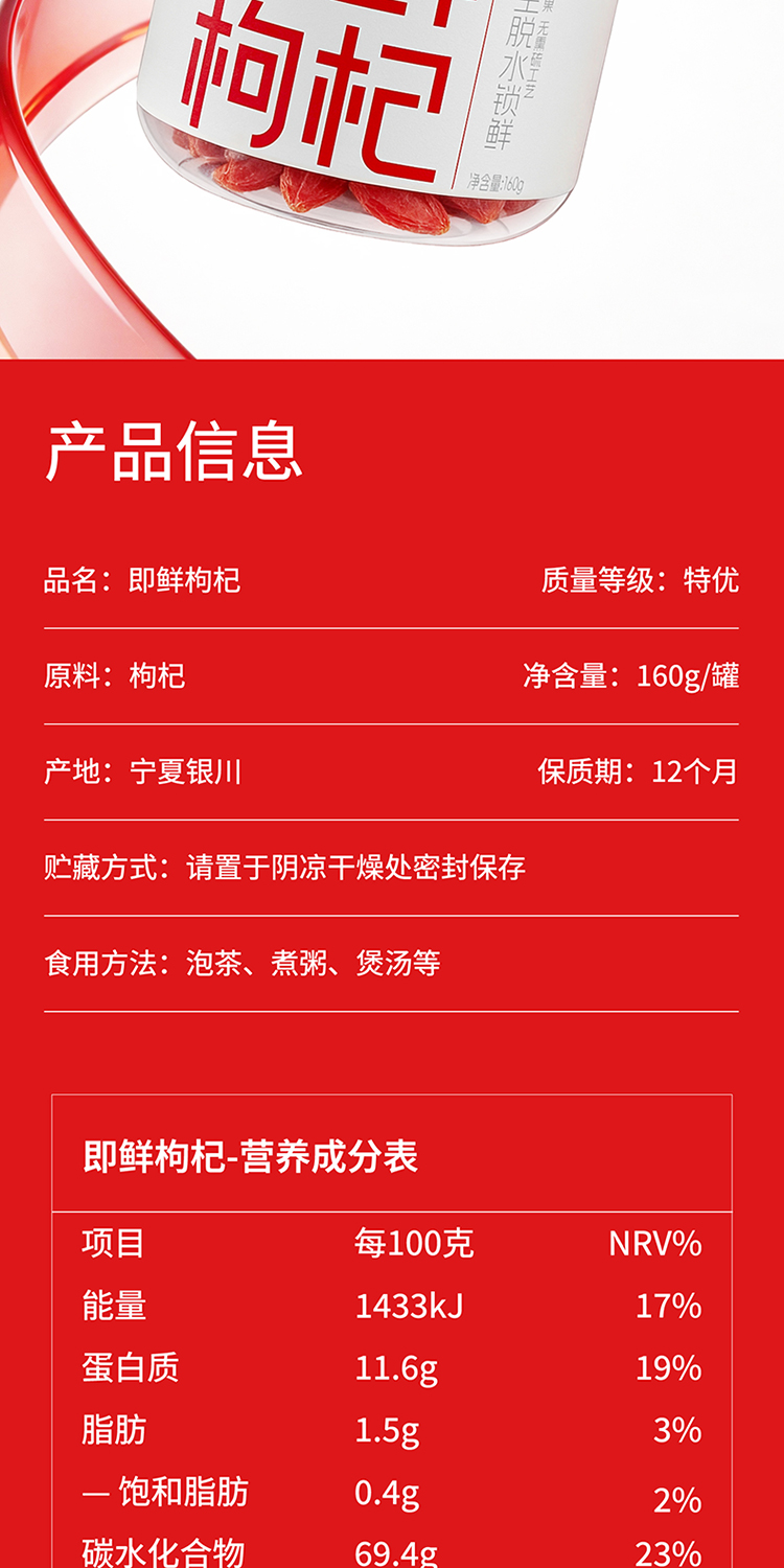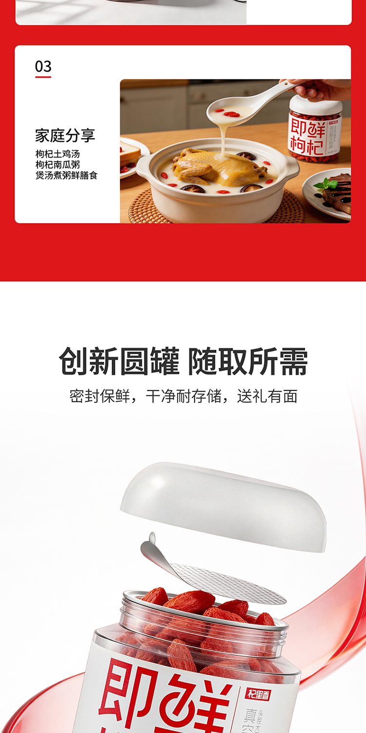 杞里香160g、250g圆罐220粒头茬即鲜枸杞,宁夏红枸杞真脉动专利锁鲜工艺头茬大果枸杞特优级手选