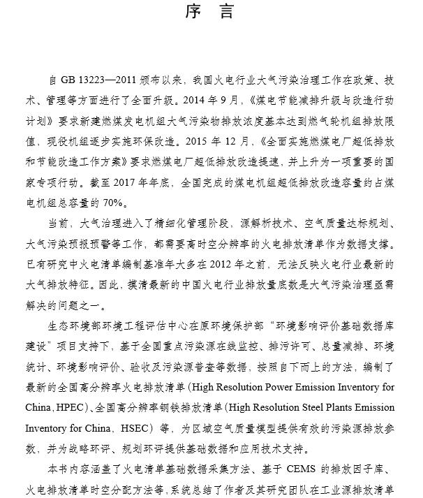 本书可作为高等院校环境科学、环境工程、环境管理等专业的教学参考书,也可作为固定污染源排放清单研究的参考工具,还可供电力部门、科研院所、环境管理部门的科技人员参考。