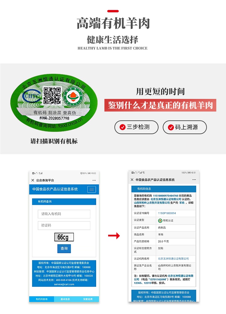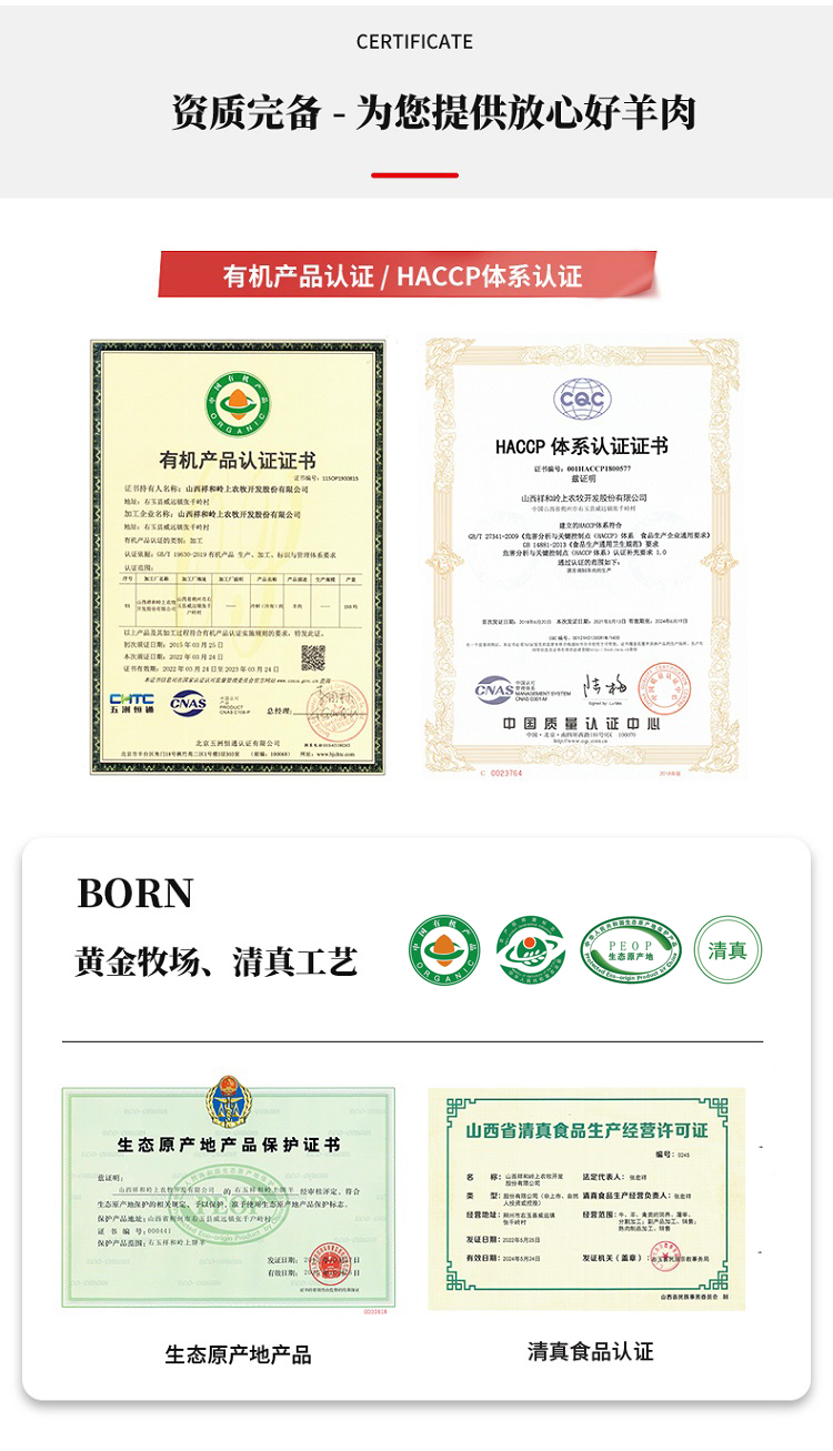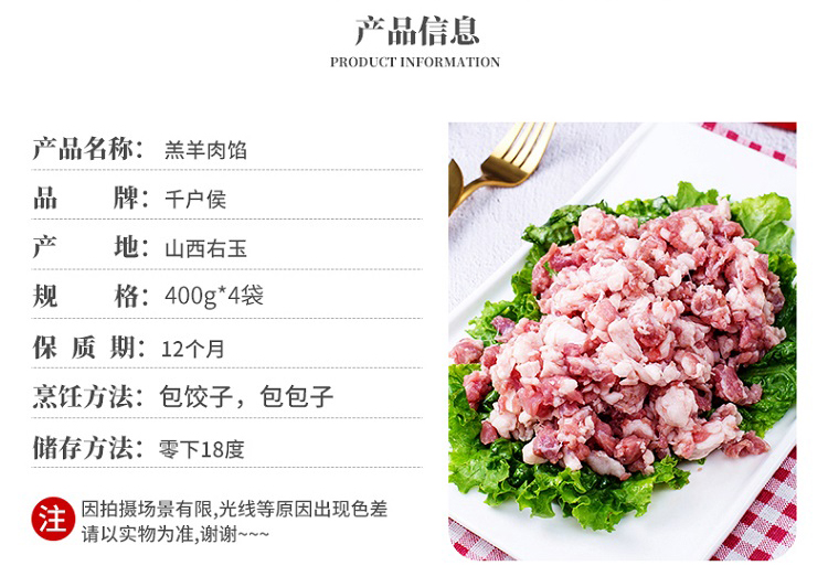 【千户侯】右玉有机羔羊肉馅 400g*2袋