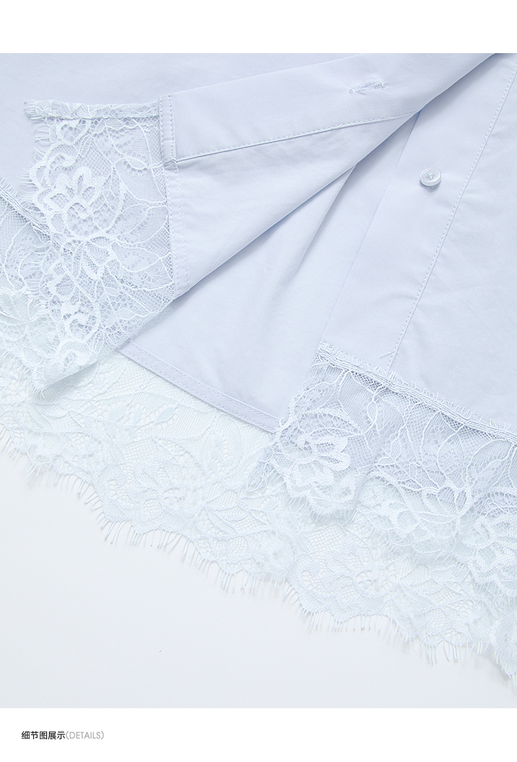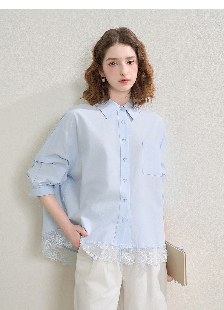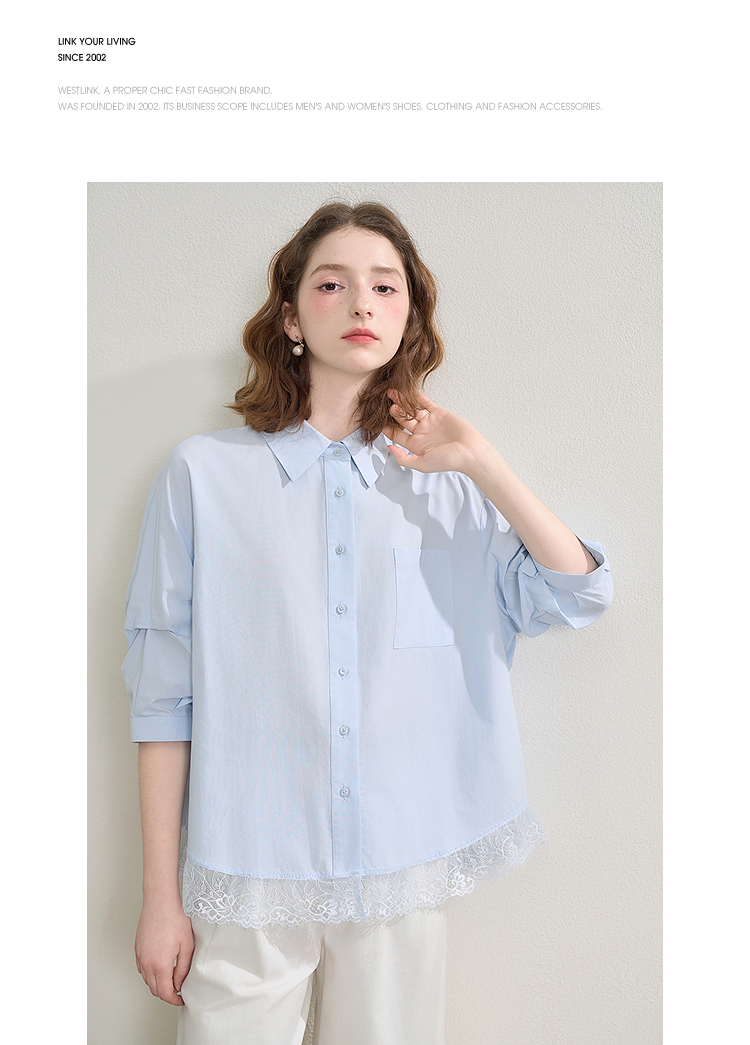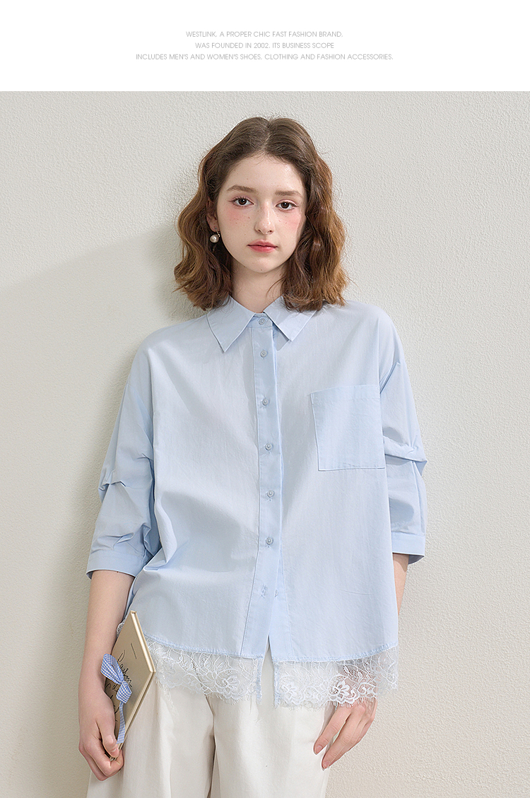 西遇蕾丝花边拼接通勤衬衫女秋季宽松显瘦设计感衬衣V2551108