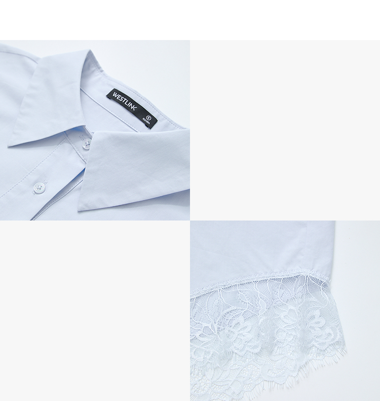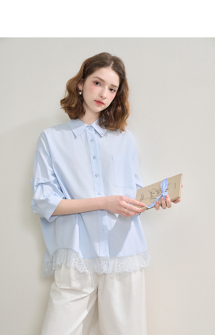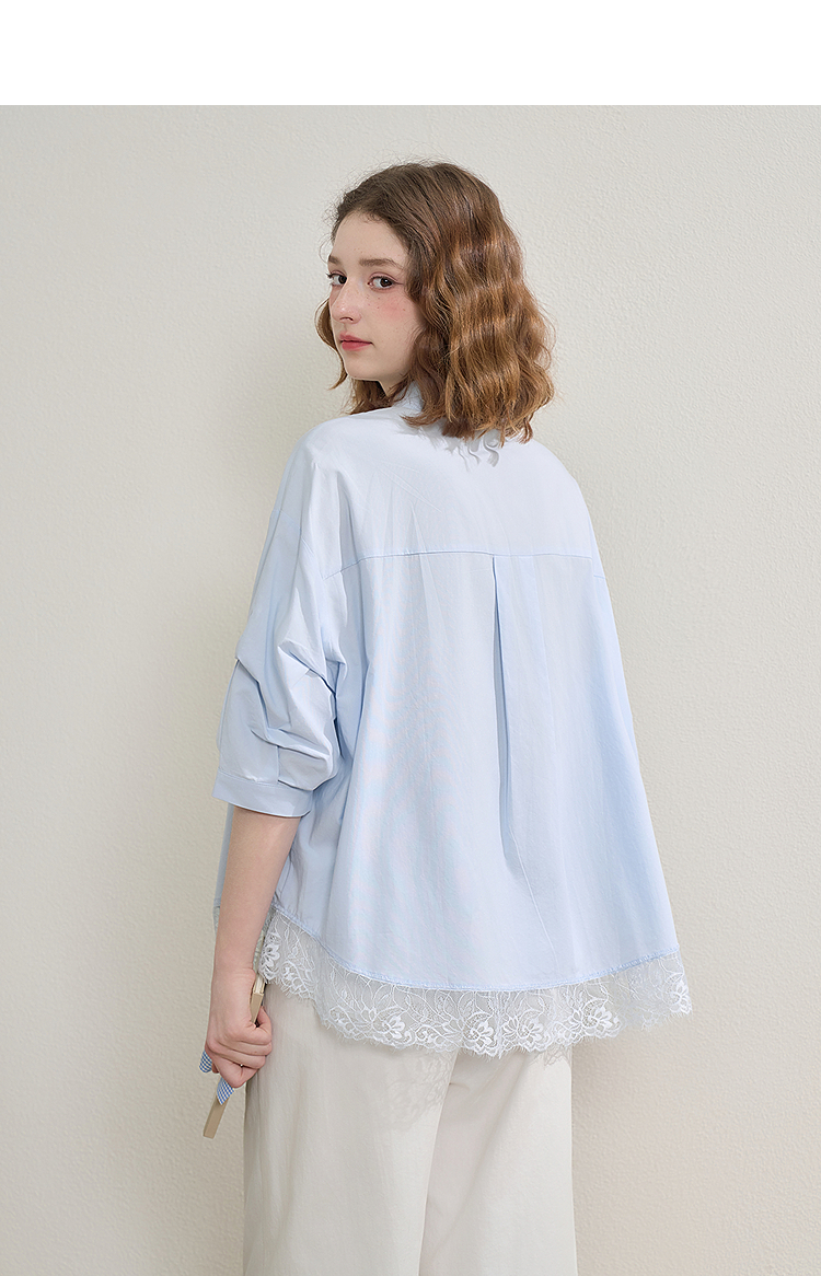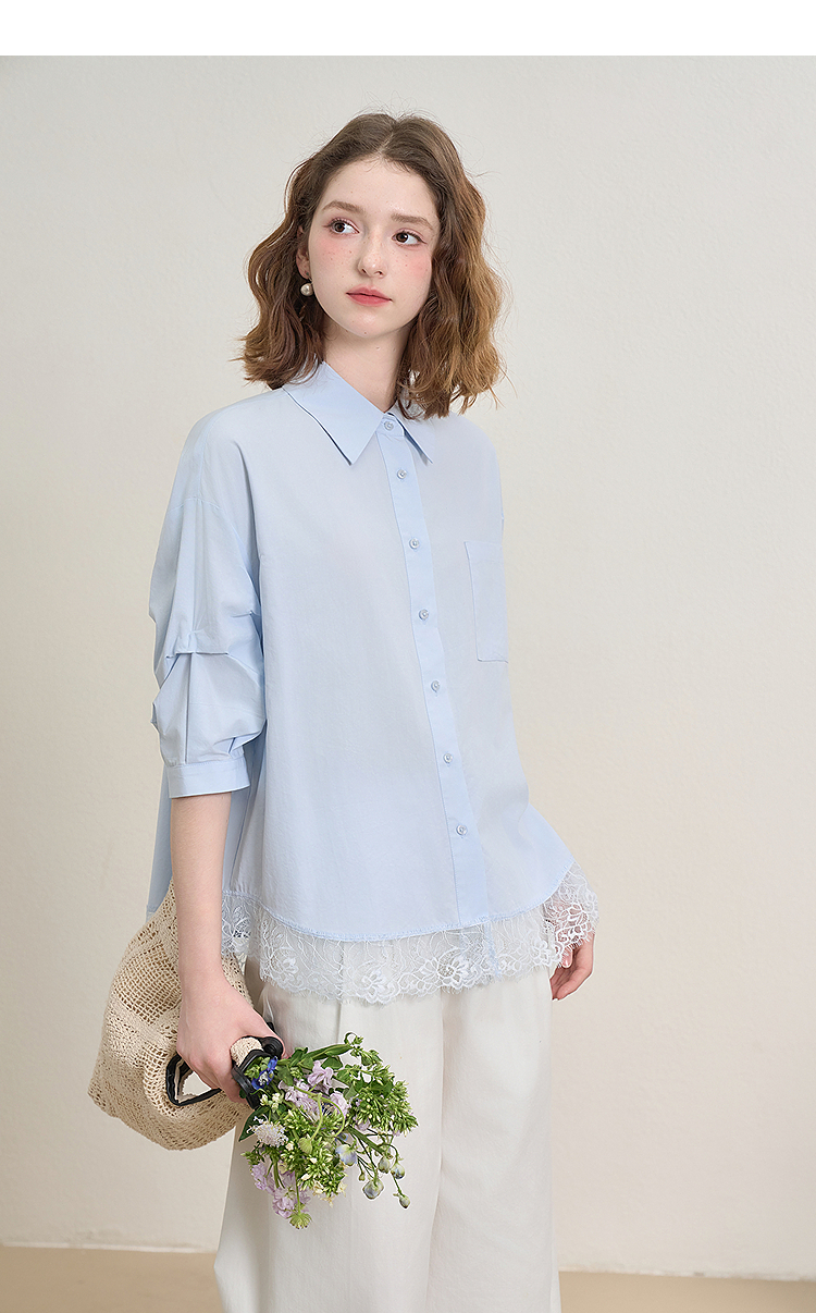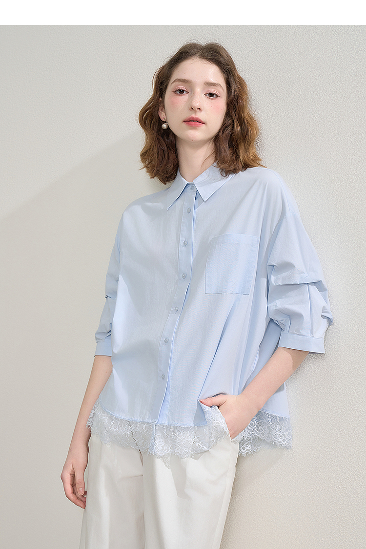 西遇蕾丝花边拼接通勤衬衫女秋季宽松显瘦设计感衬衣V2551108