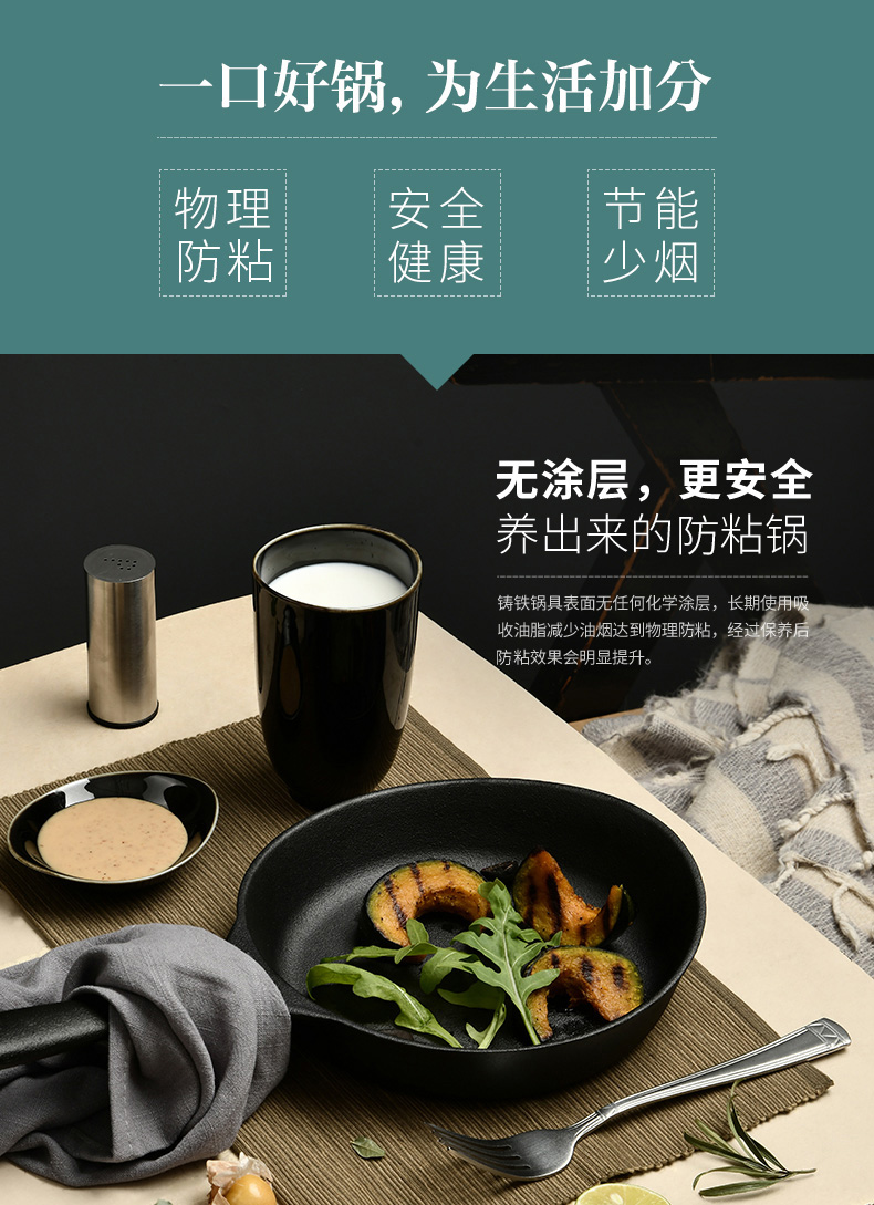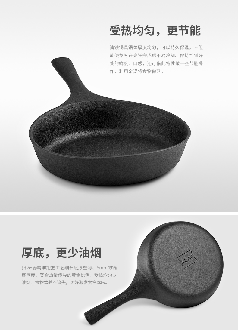 【无涂层迷你铸铁煎锅/奶锅/牛排锅】归禾器铸铁平底不易粘锅早餐小煎锅无涂层家用生铁锅煎蛋锅牛排锅