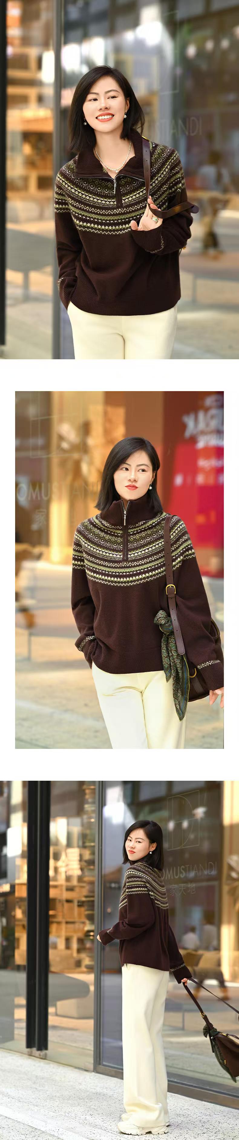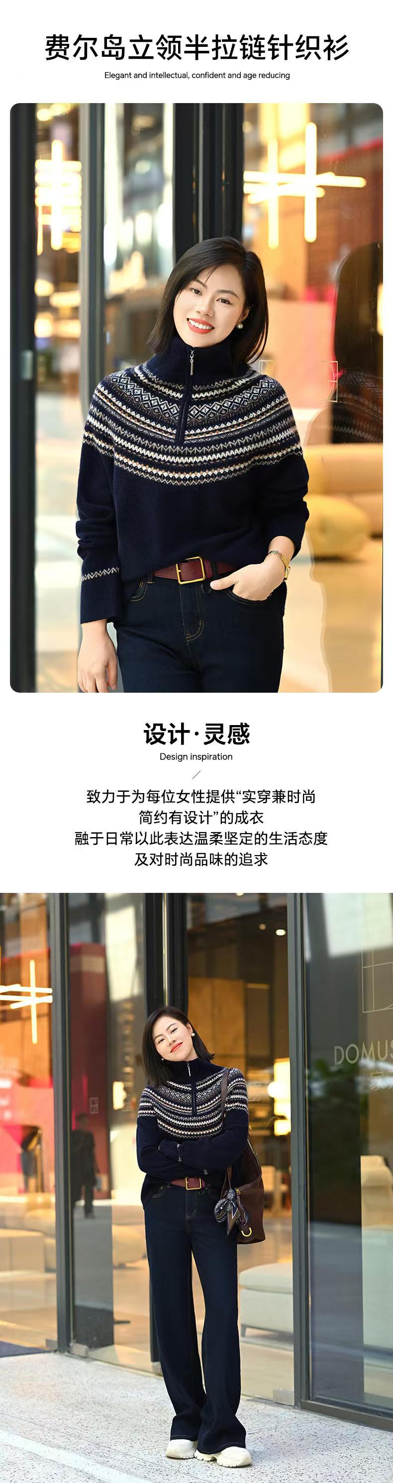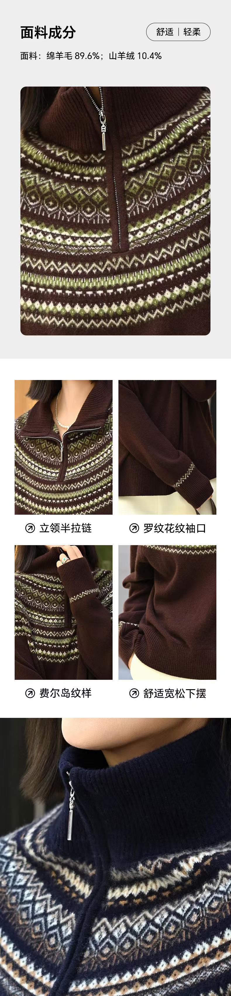 【现货】专柜 800 + 品质费尔岛经典花纹针织衫 可翻立领半拉链 软糯保暖