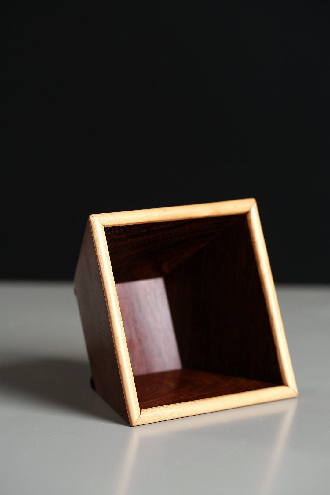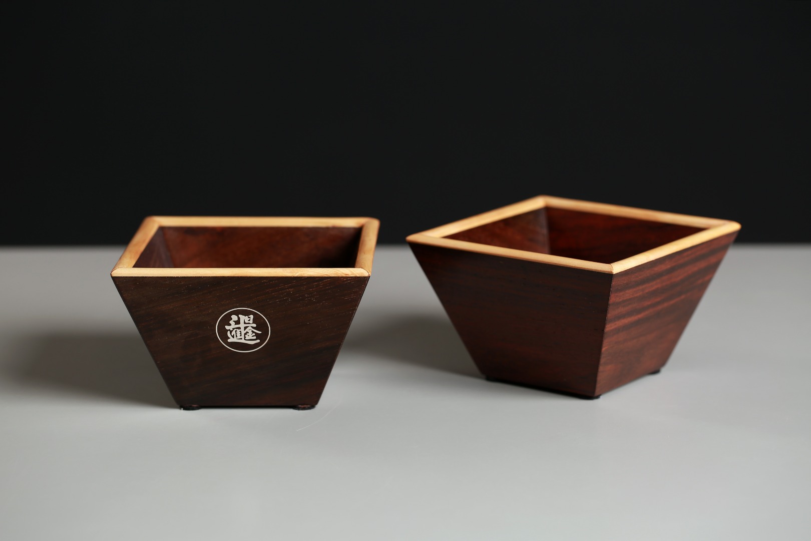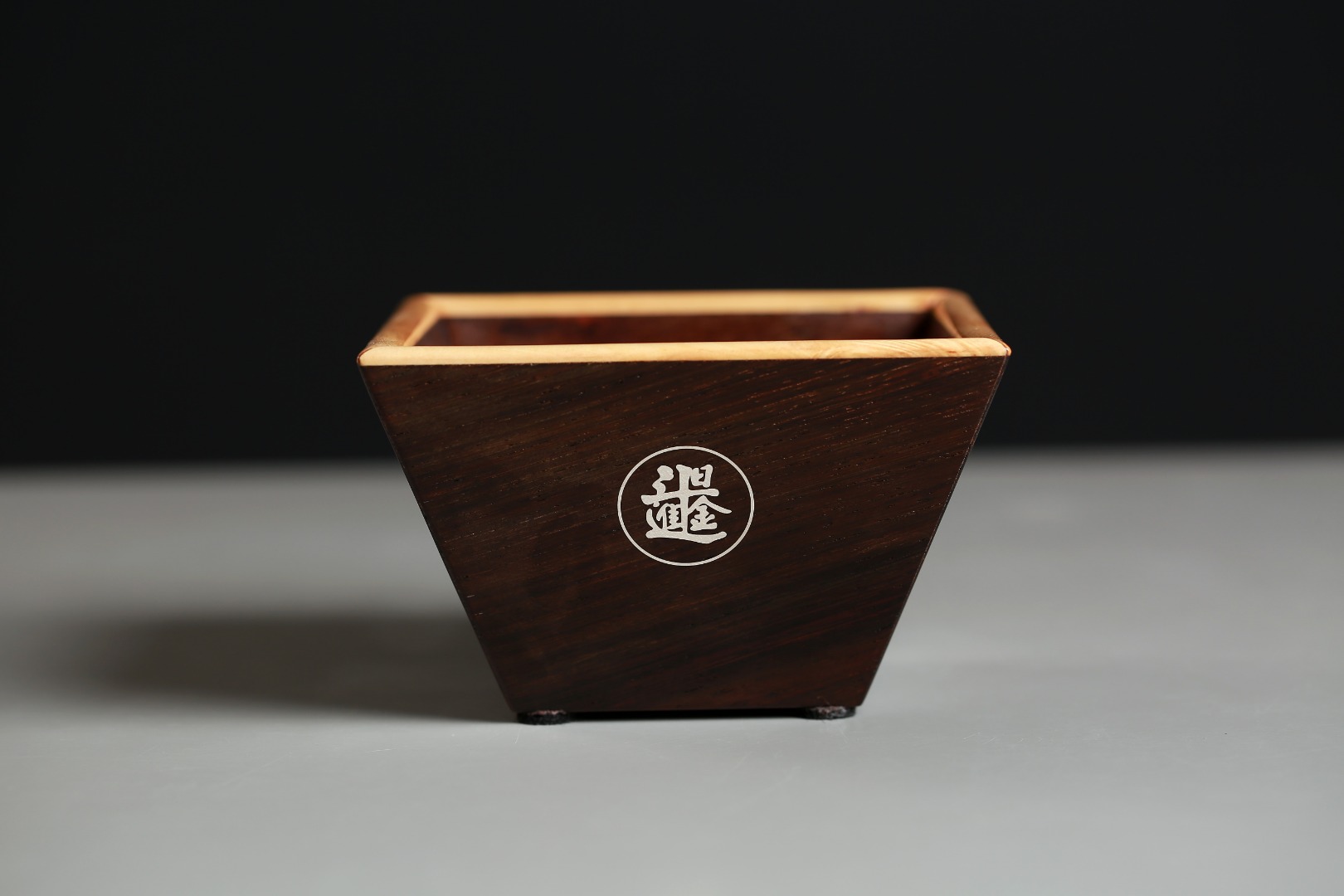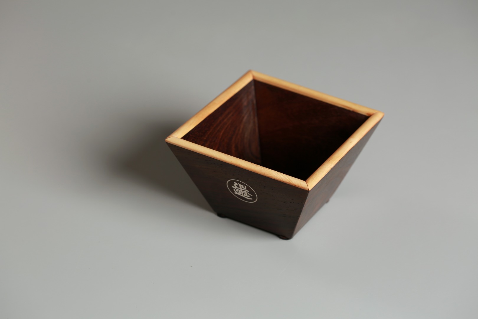 取大红酸枝为材,色彩古朴,纹理细腻,依传统米斗型制,象征丰衣足食、生活无忧,整体榫卯构造,组合巧妙,下窄上宽,步步高升。边沿嵌入黄杨木,于深沉中见靓丽,底部凹槽设计,摆放平稳,精巧别致。通体打磨光滑细腻,表面嵌银“日进斗金”字样,寄寓财源滚滚、富贵不断。