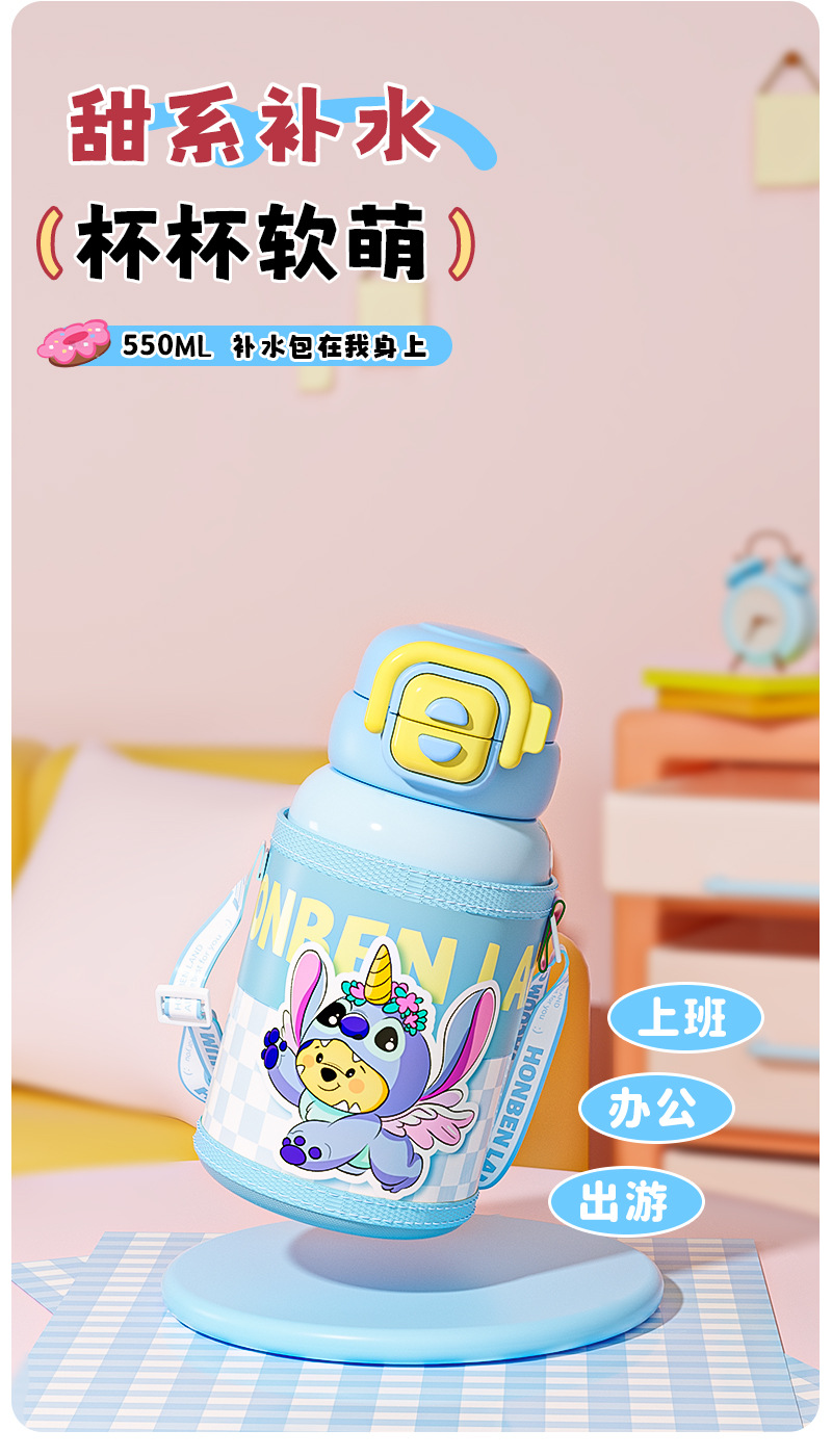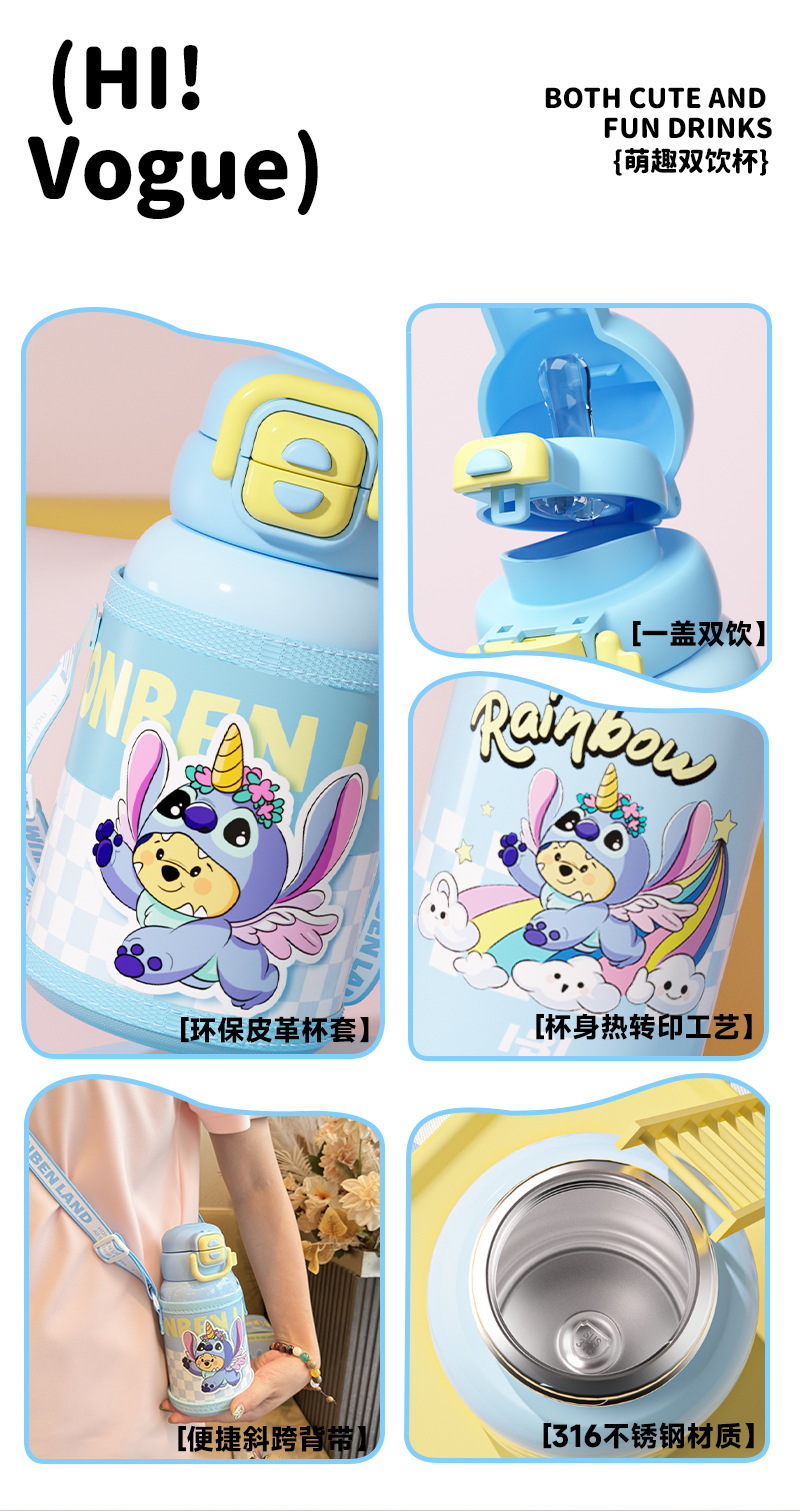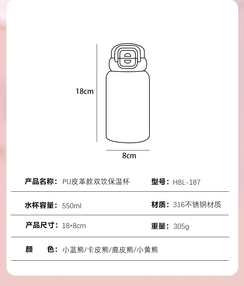 【316食品级❗️PU皮革款双饮保温杯】卡通双饮儿童可爱水壶 大容量吸管杯防摔学生水杯✨卡通双饮保温杯,防摔耐用更安全!550ml大容量🎉吸管+直饮随心选,趣味喝水快乐加倍!