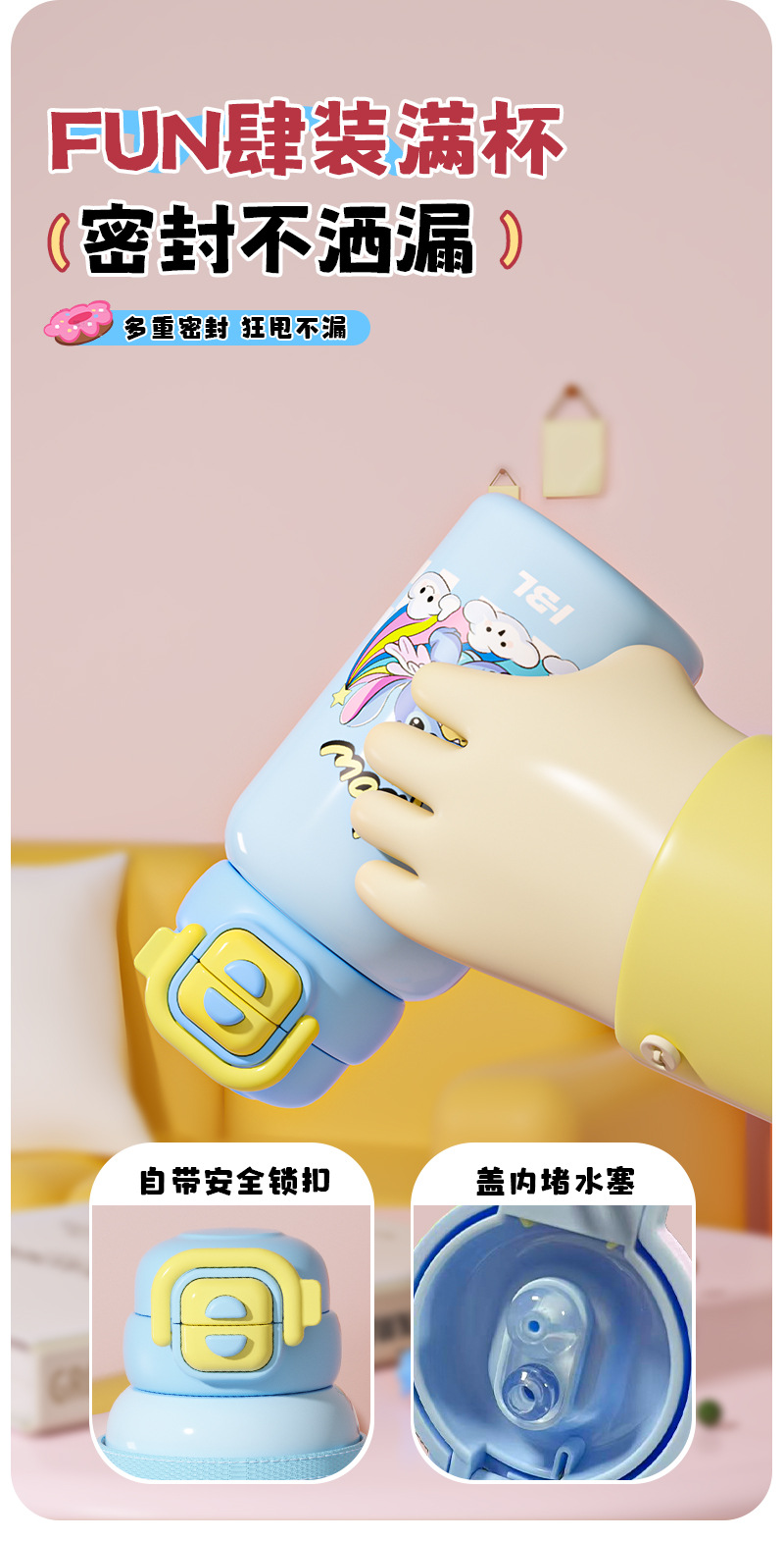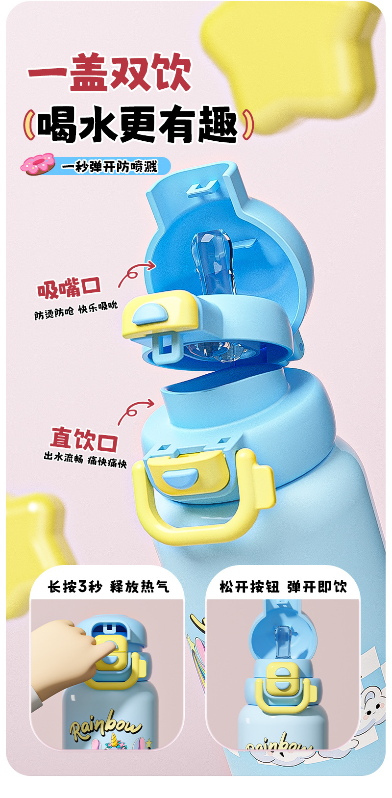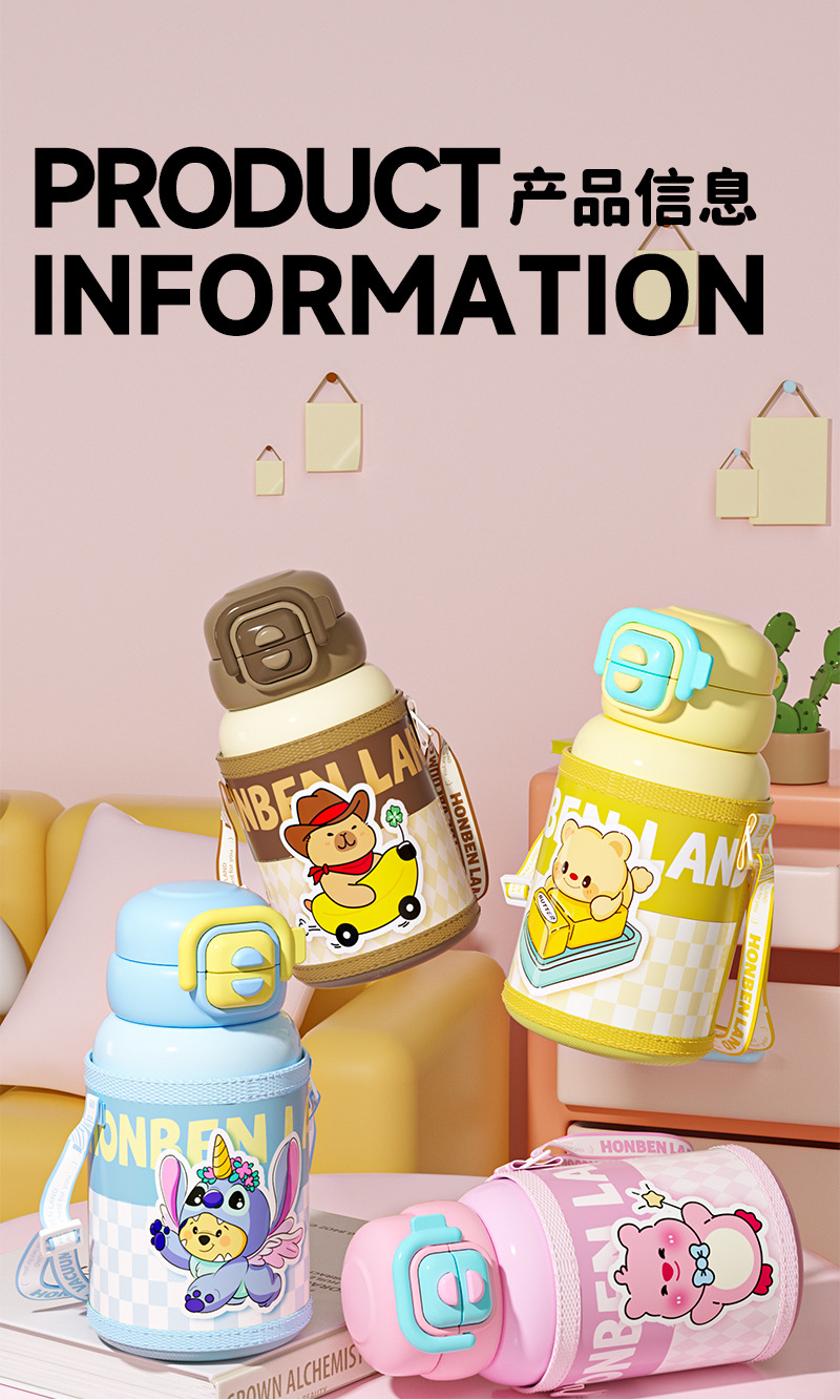 【316食品级❗️PU皮革款双饮保温杯】卡通双饮儿童可爱水壶 大容量吸管杯防摔学生水杯✨卡通双饮保温杯,防摔耐用更安全!550ml大容量🎉吸管+直饮随心选,趣味喝水快乐加倍!