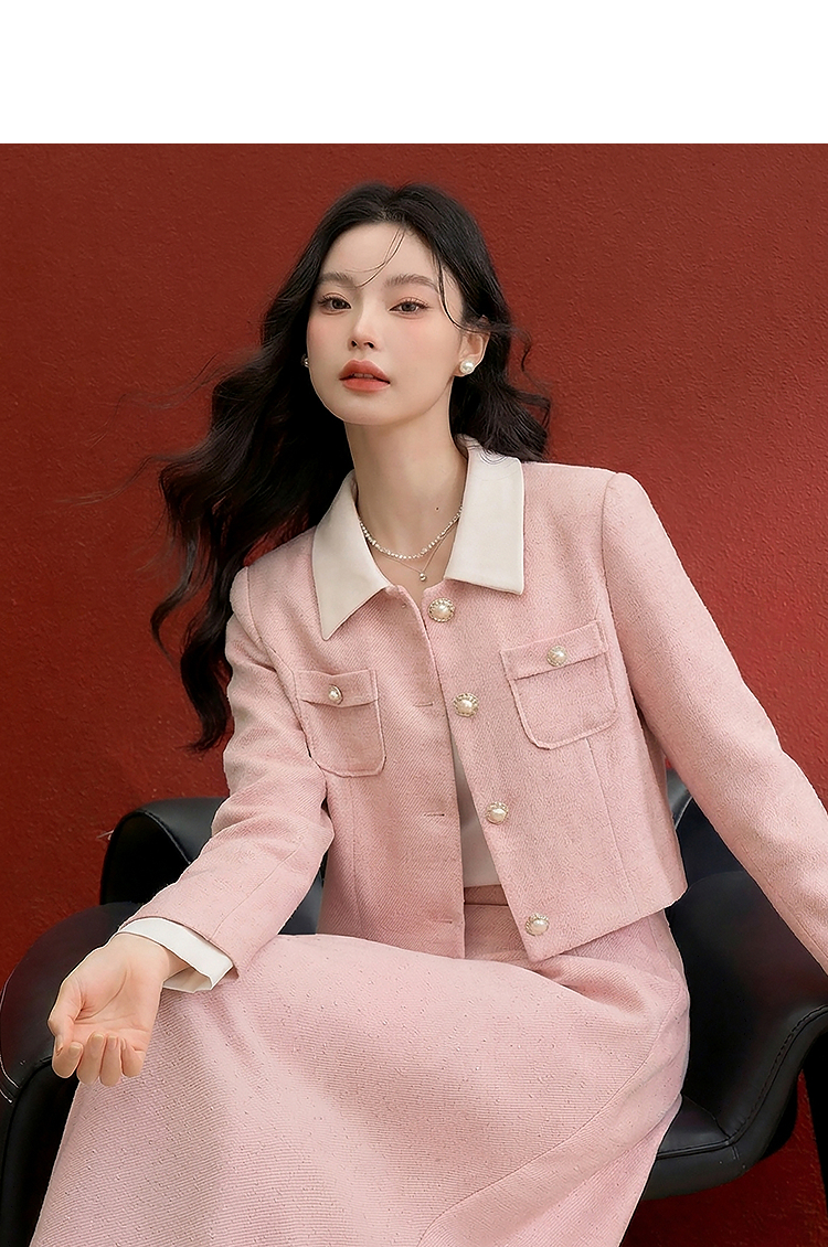 西遇小香风半身裙套装女秋季新款法式短款衬衣外套两件套V0055471/SS051441