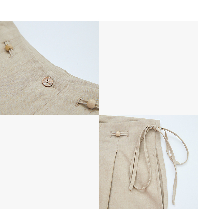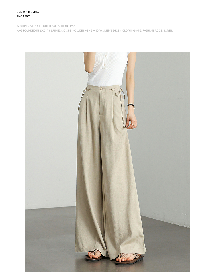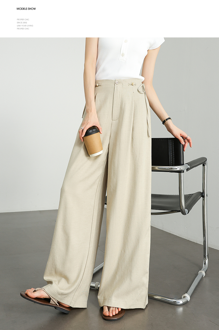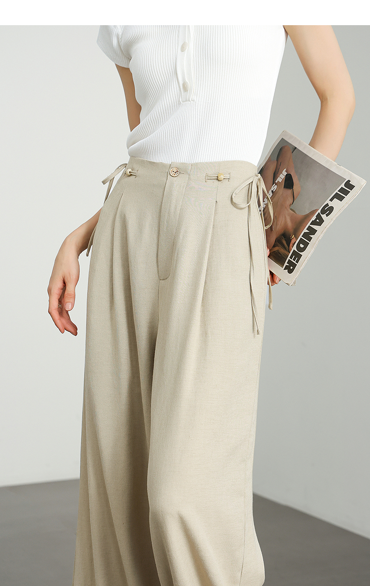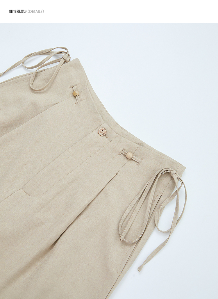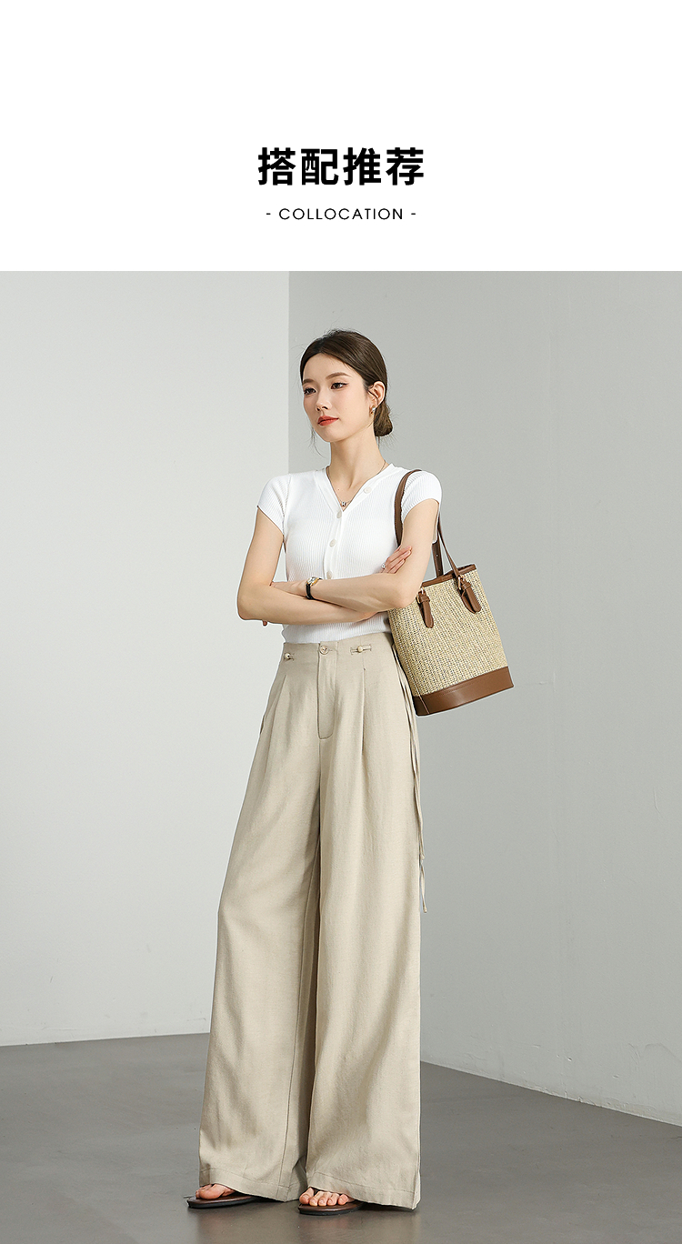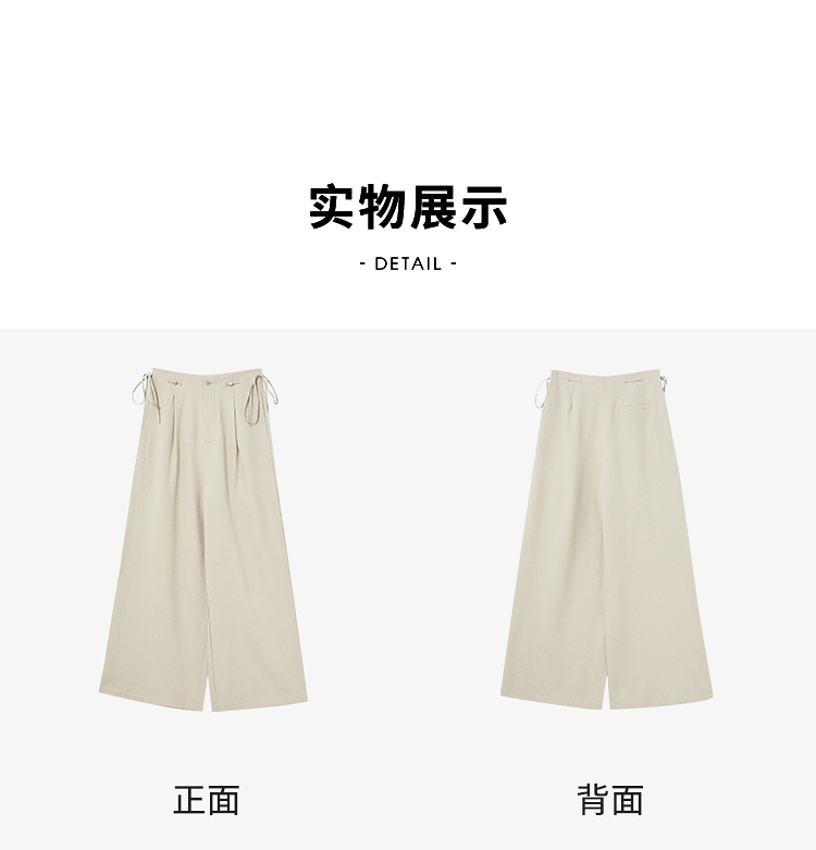 【舒适亚麻】慵懒感随性阔腿裤女夏季复古设计感串珠长裤LXD50759