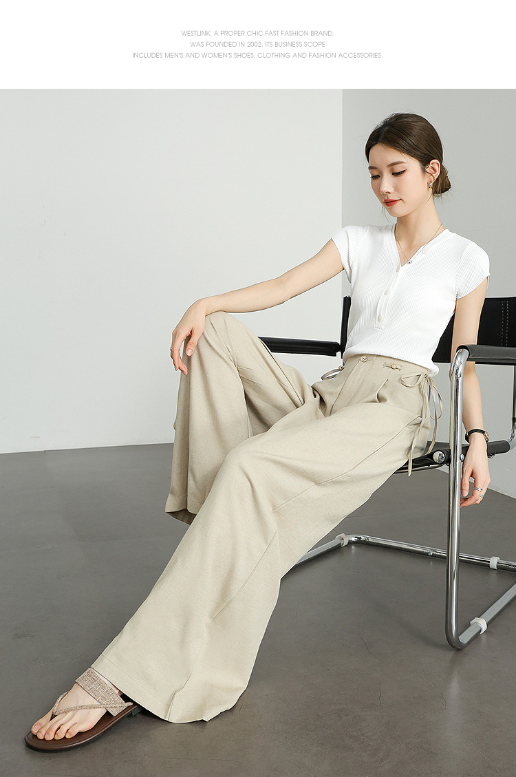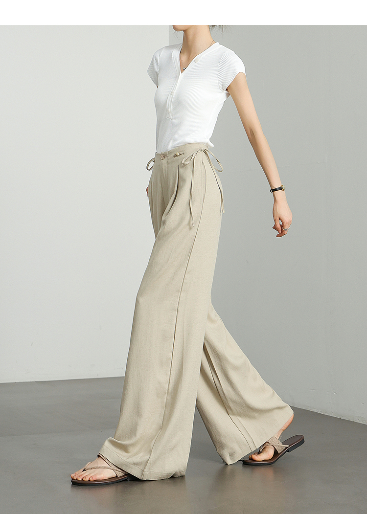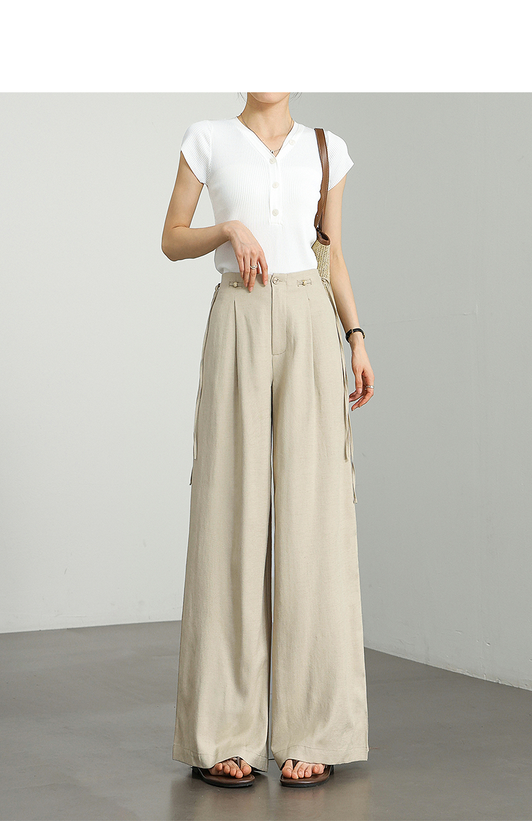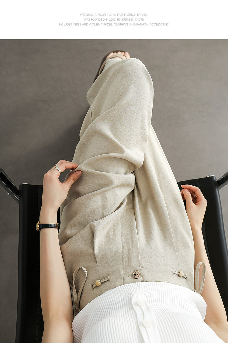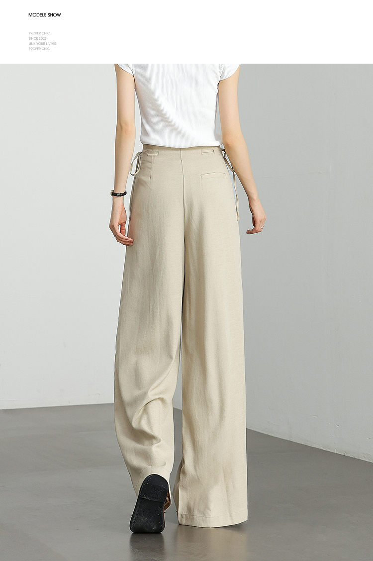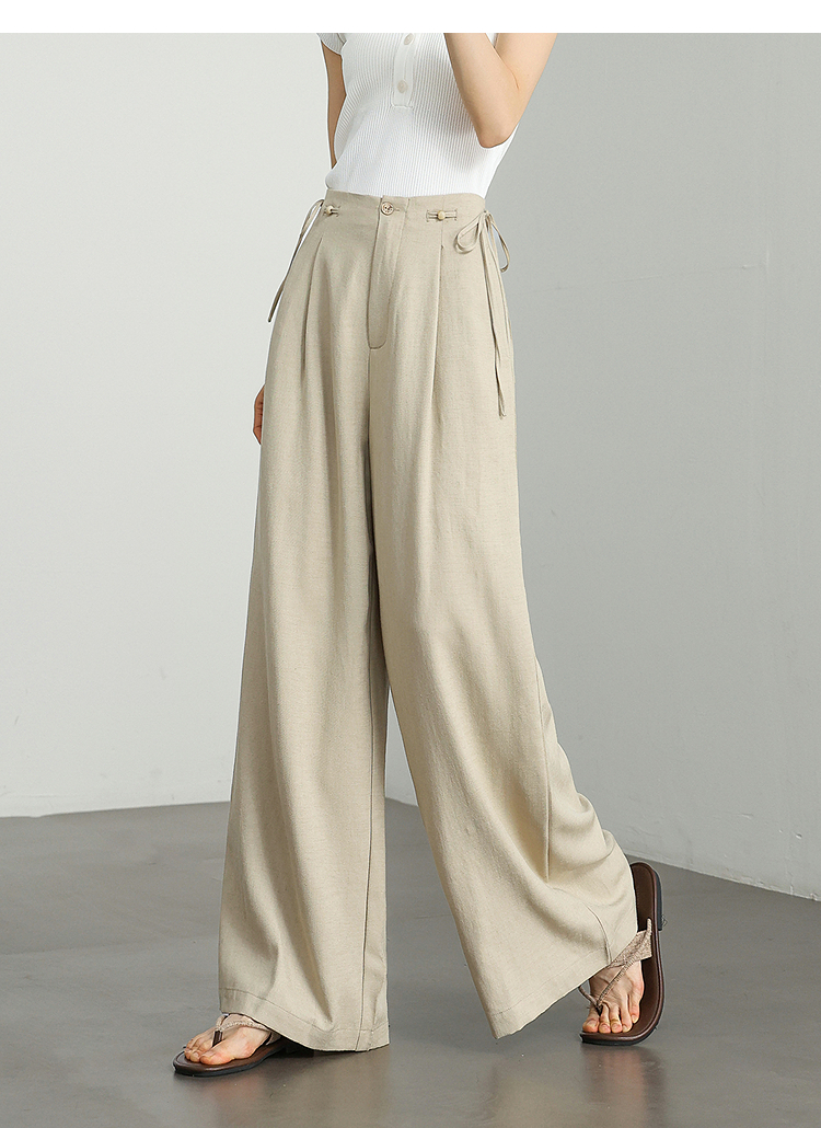 【舒适亚麻】慵懒感随性阔腿裤女夏季复古设计感串珠长裤LXD50759