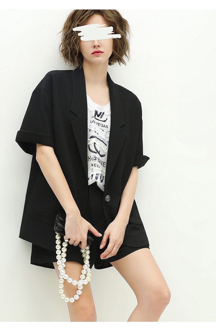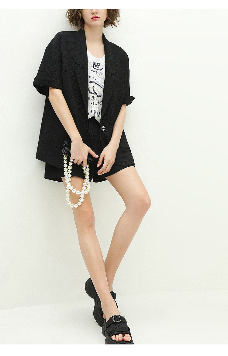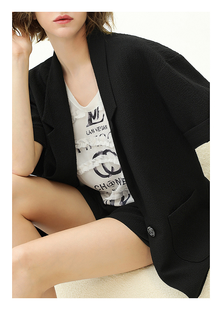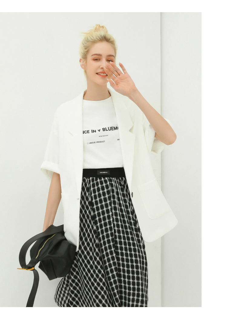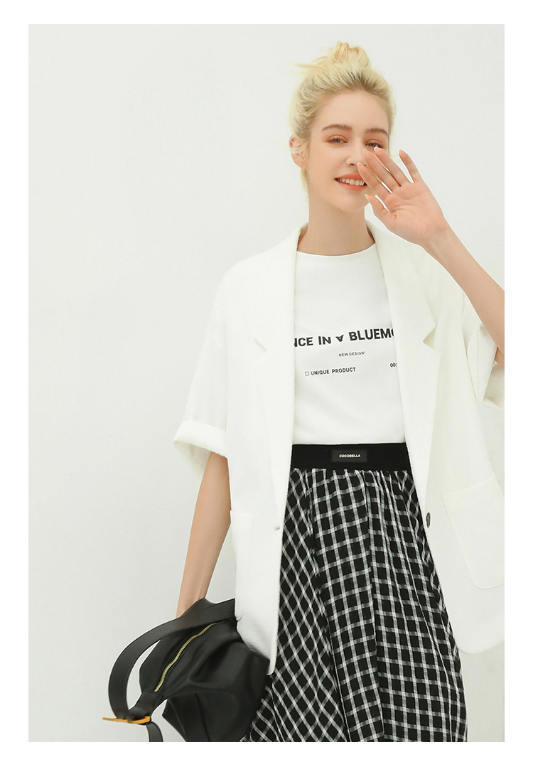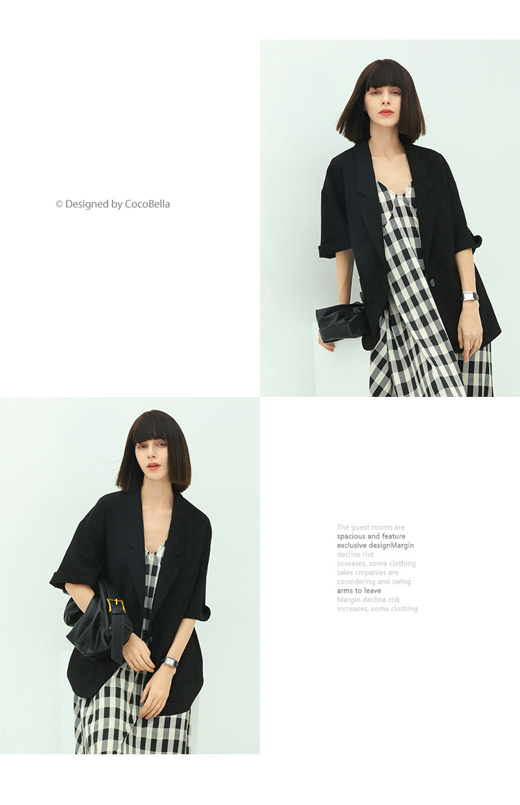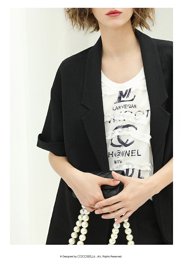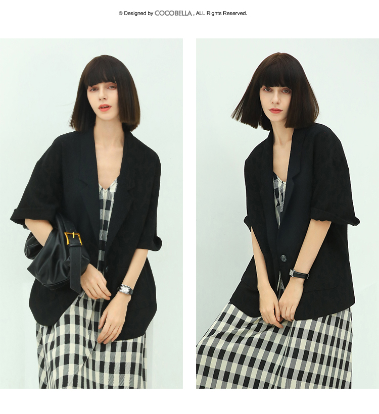 COCOBELLA设计师款黑白纯色肌理感中袖西装女夏宽松外套SI12A