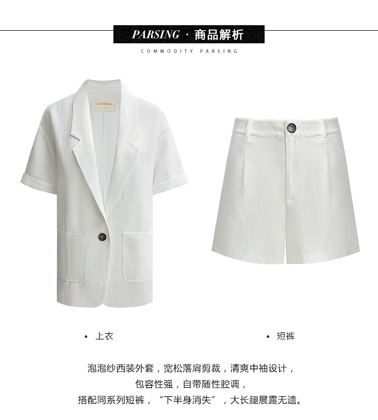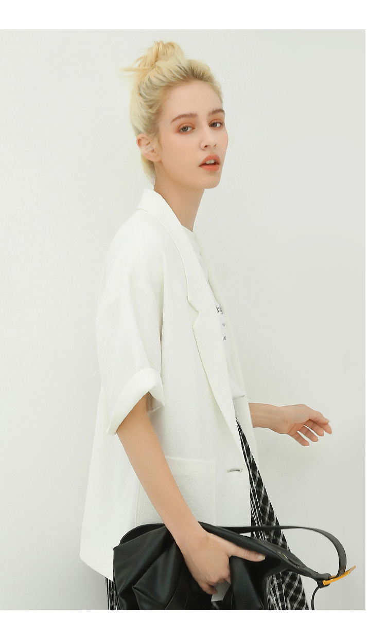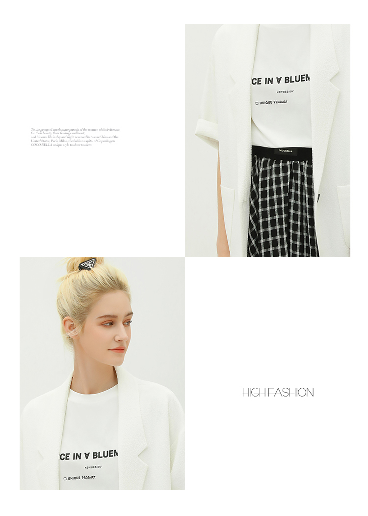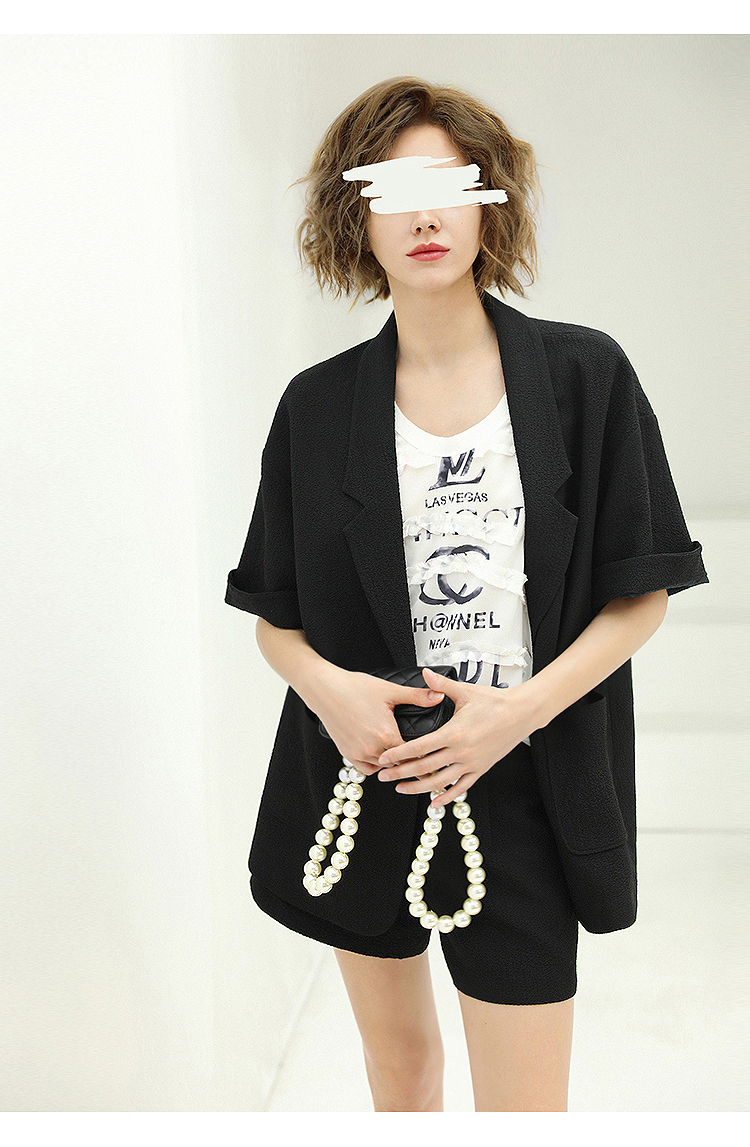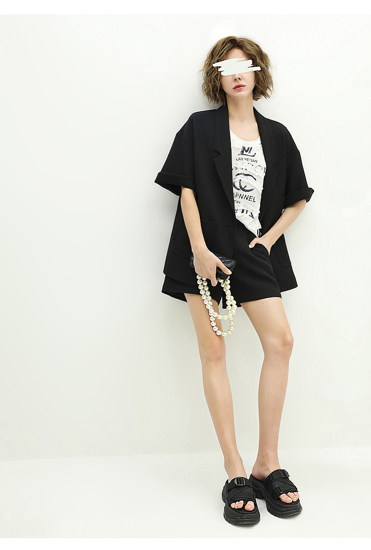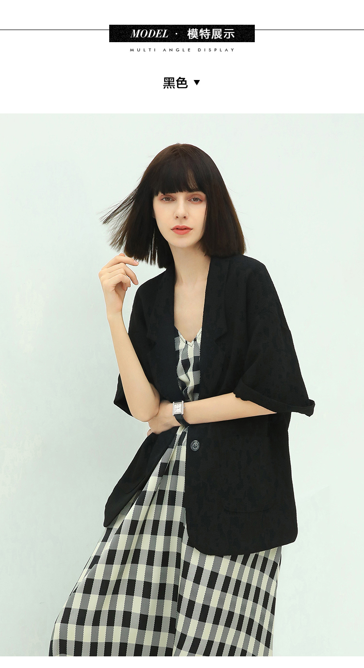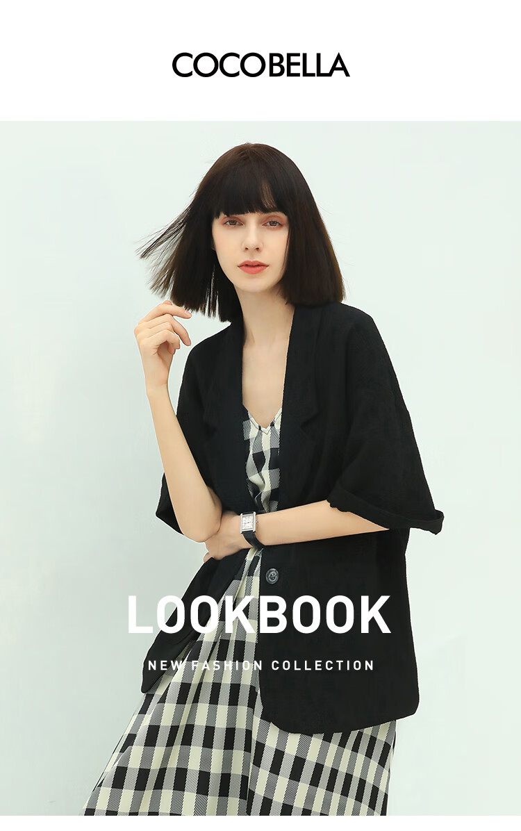COCOBELLA设计师款黑白纯色肌理感中袖西装女夏宽松外套SI12A