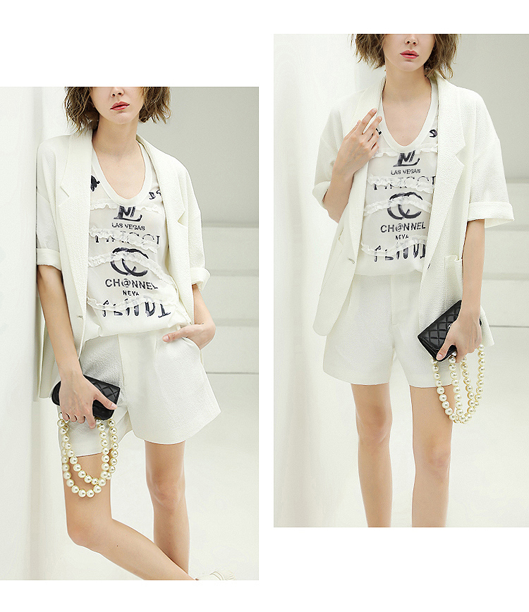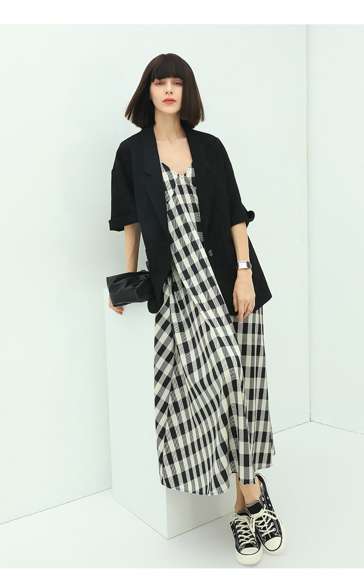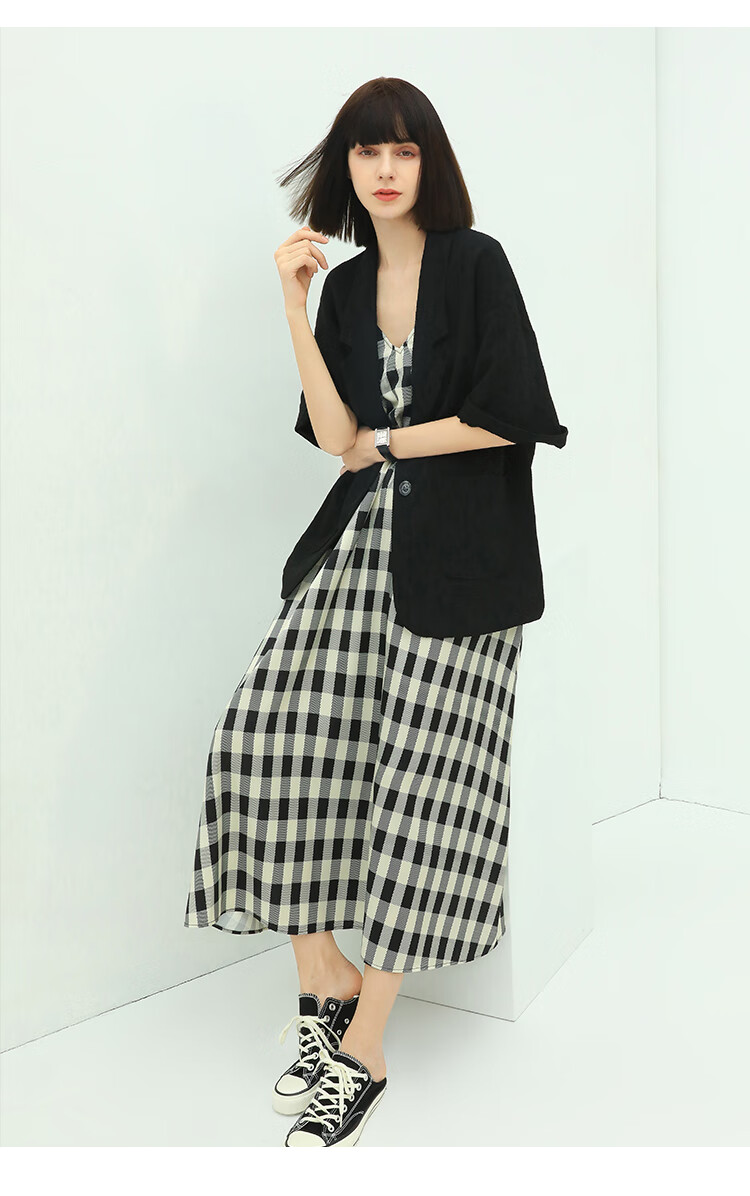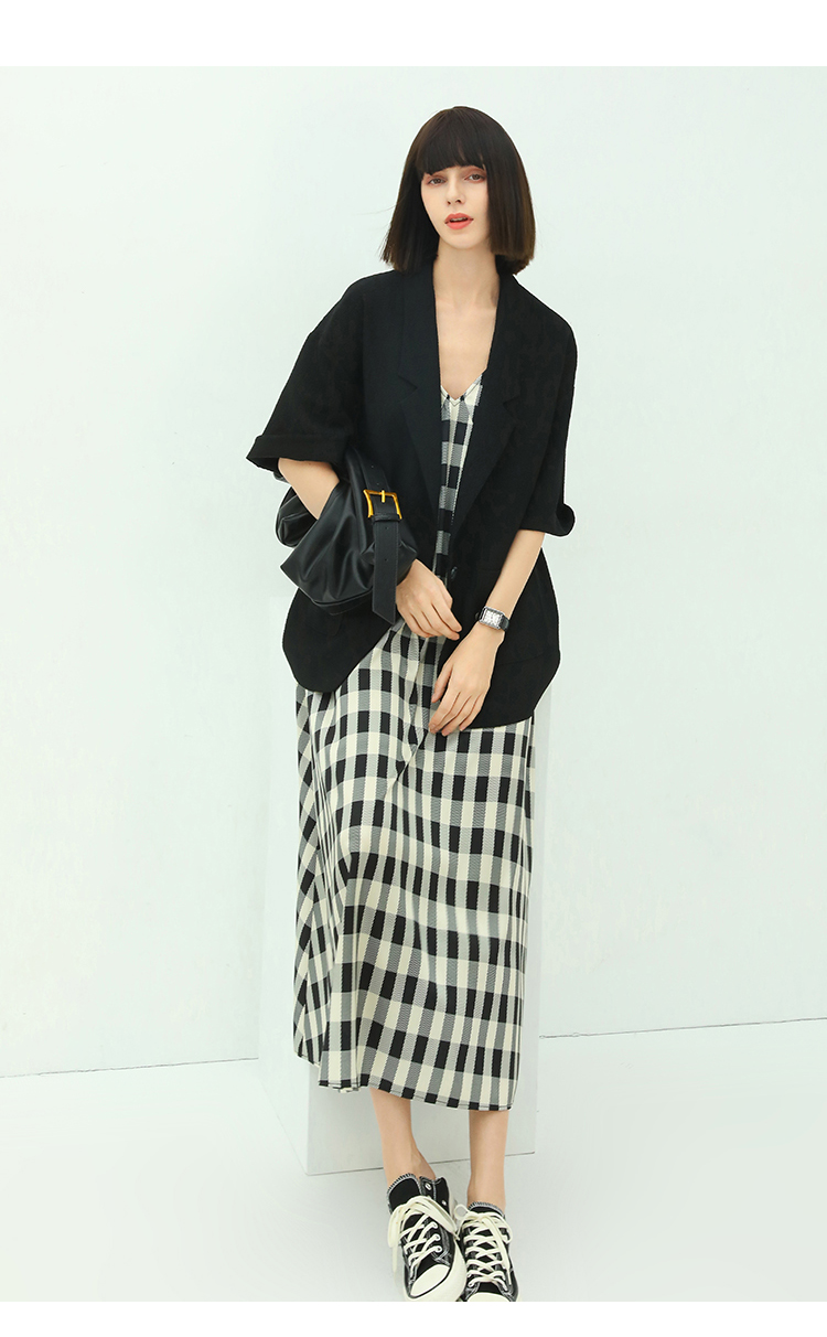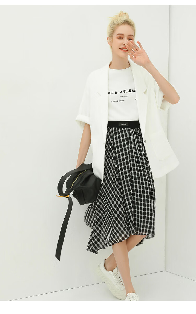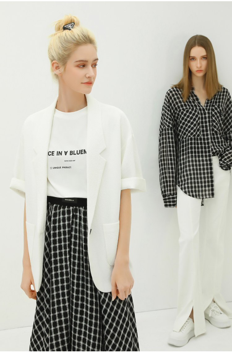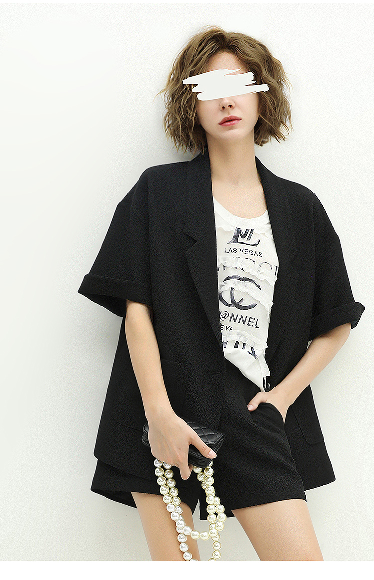 COCOBELLA设计师款黑白纯色肌理感中袖西装女夏宽松外套SI12A