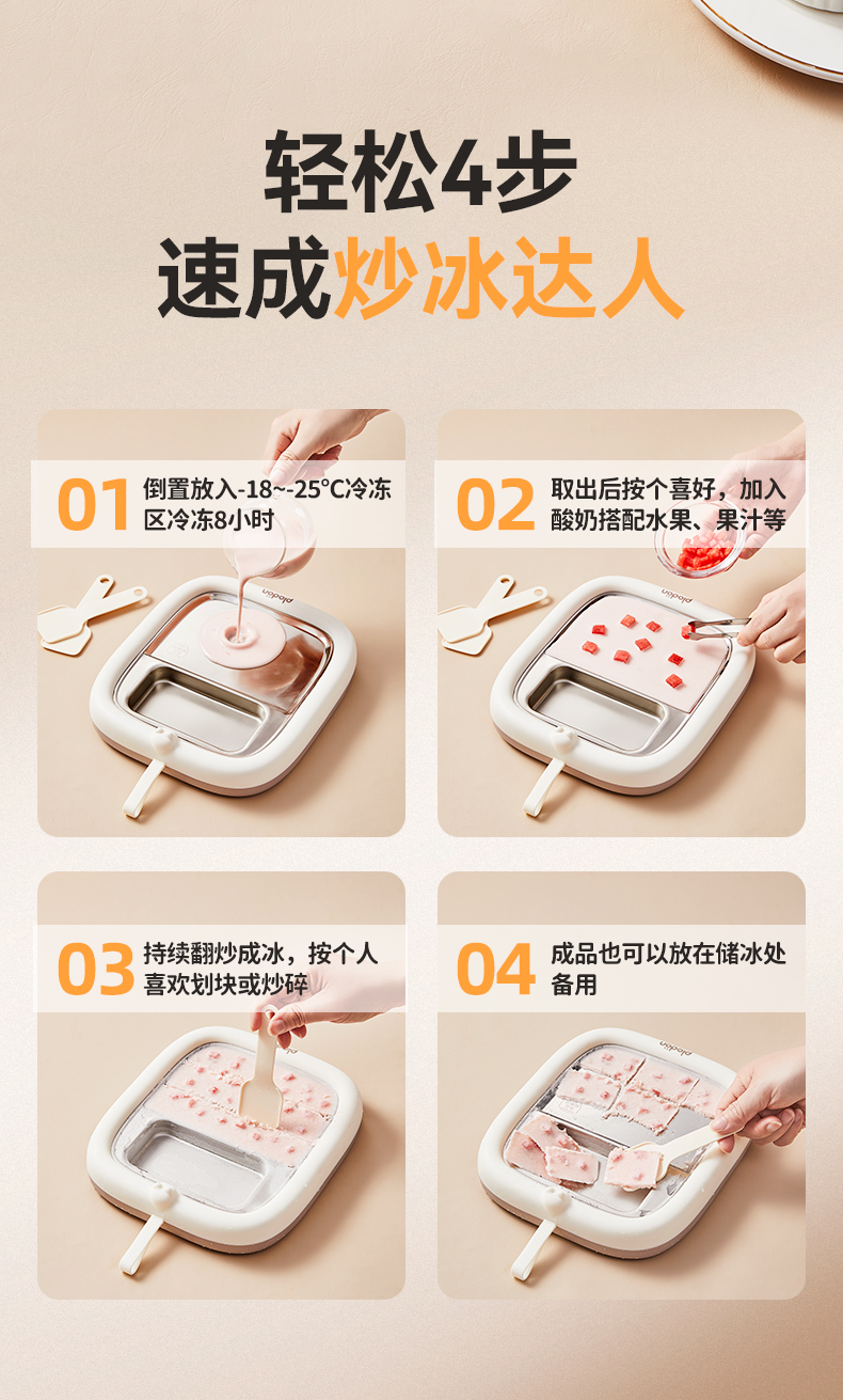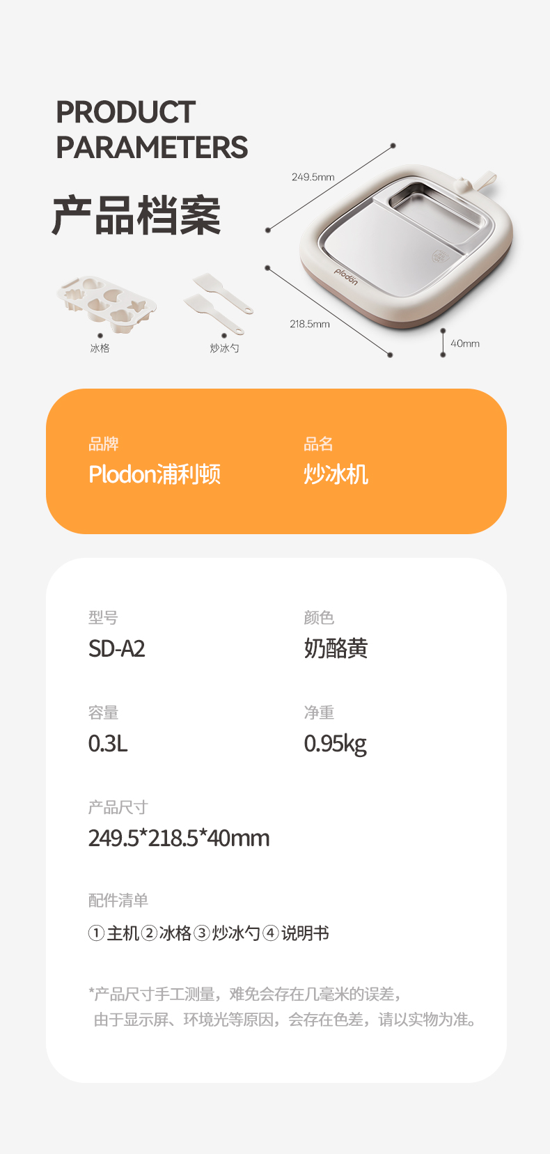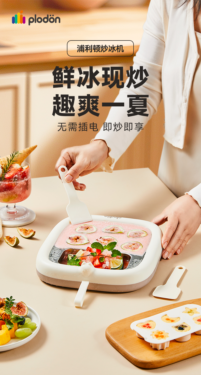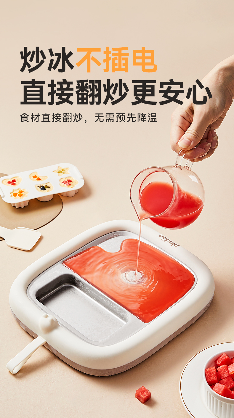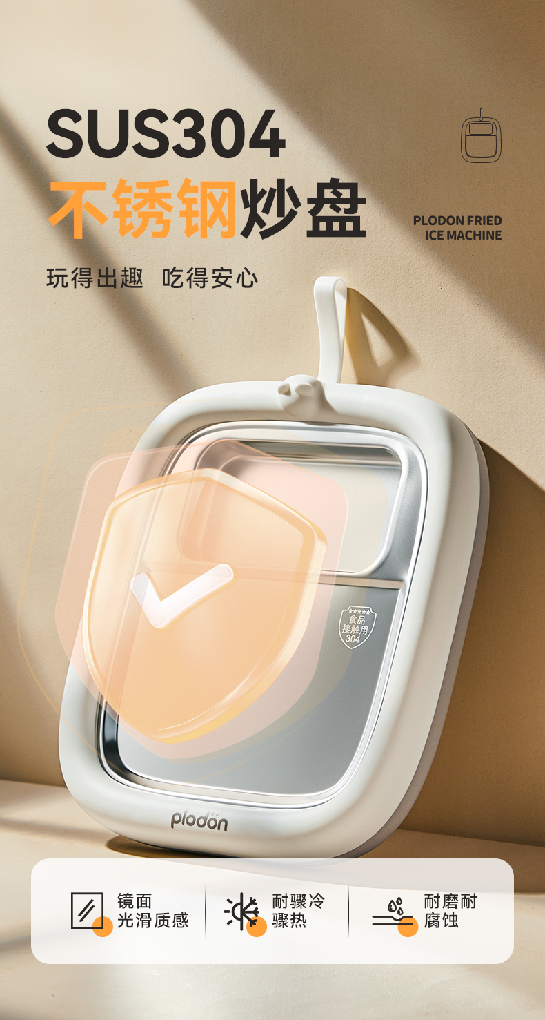 浦利顿炒酸奶机家用儿童不锈钢小型炒冰机自制diy免插电冰淇淋盘PLD-SD-A2