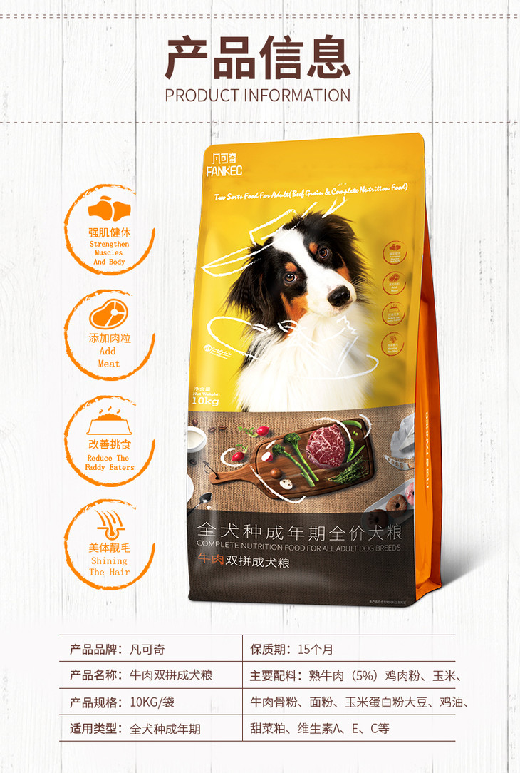 凡可奇/味途 狗粮20斤大包装 牛肉双拼通用型
