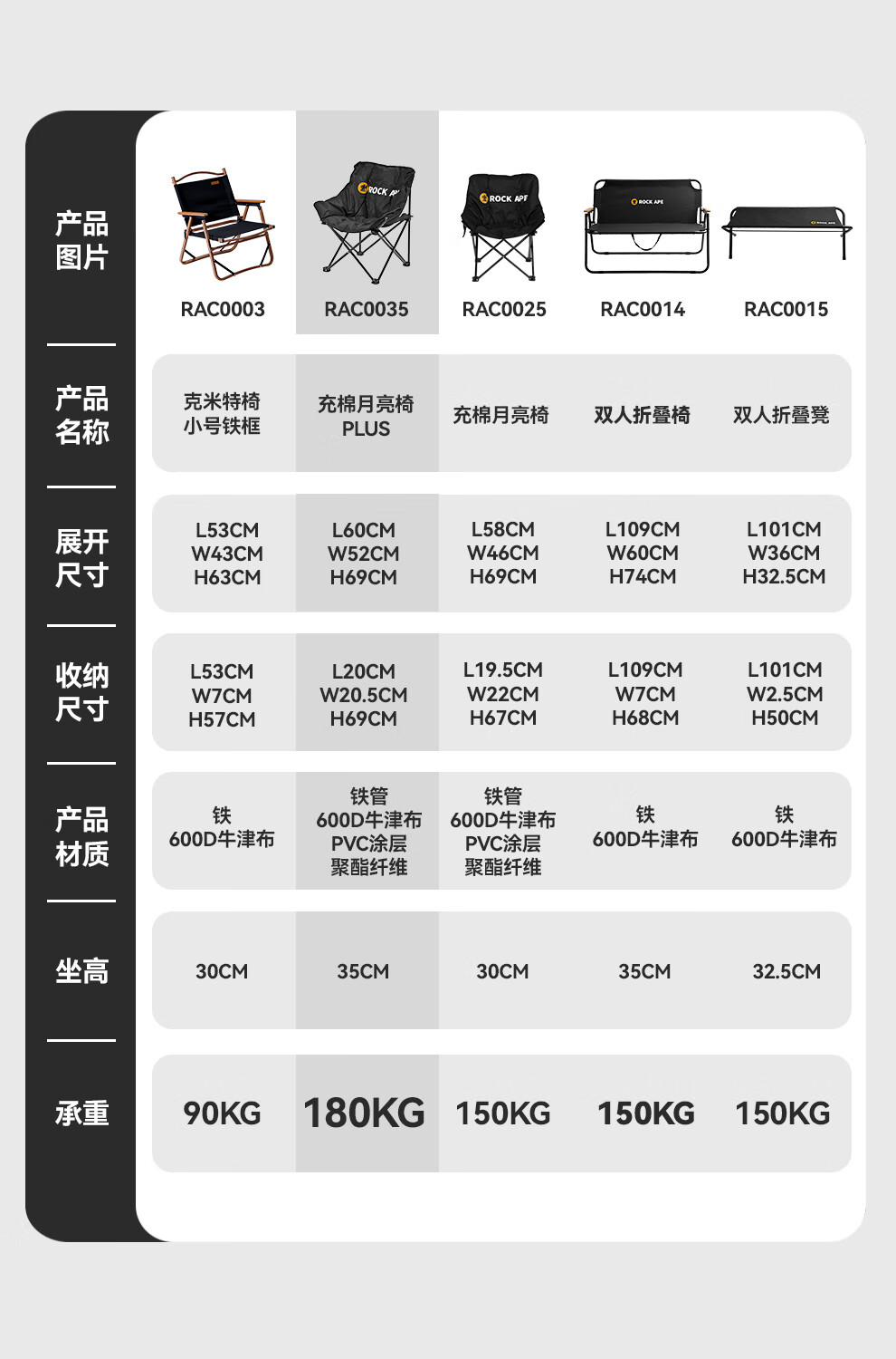 【户外折叠桌椅集合】洛克猩球RockApe克米特椅 户外露营野餐旅行便携凳折叠椅钓鱼野营椅子 大号蛋卷桌露营套装(一桌四椅)