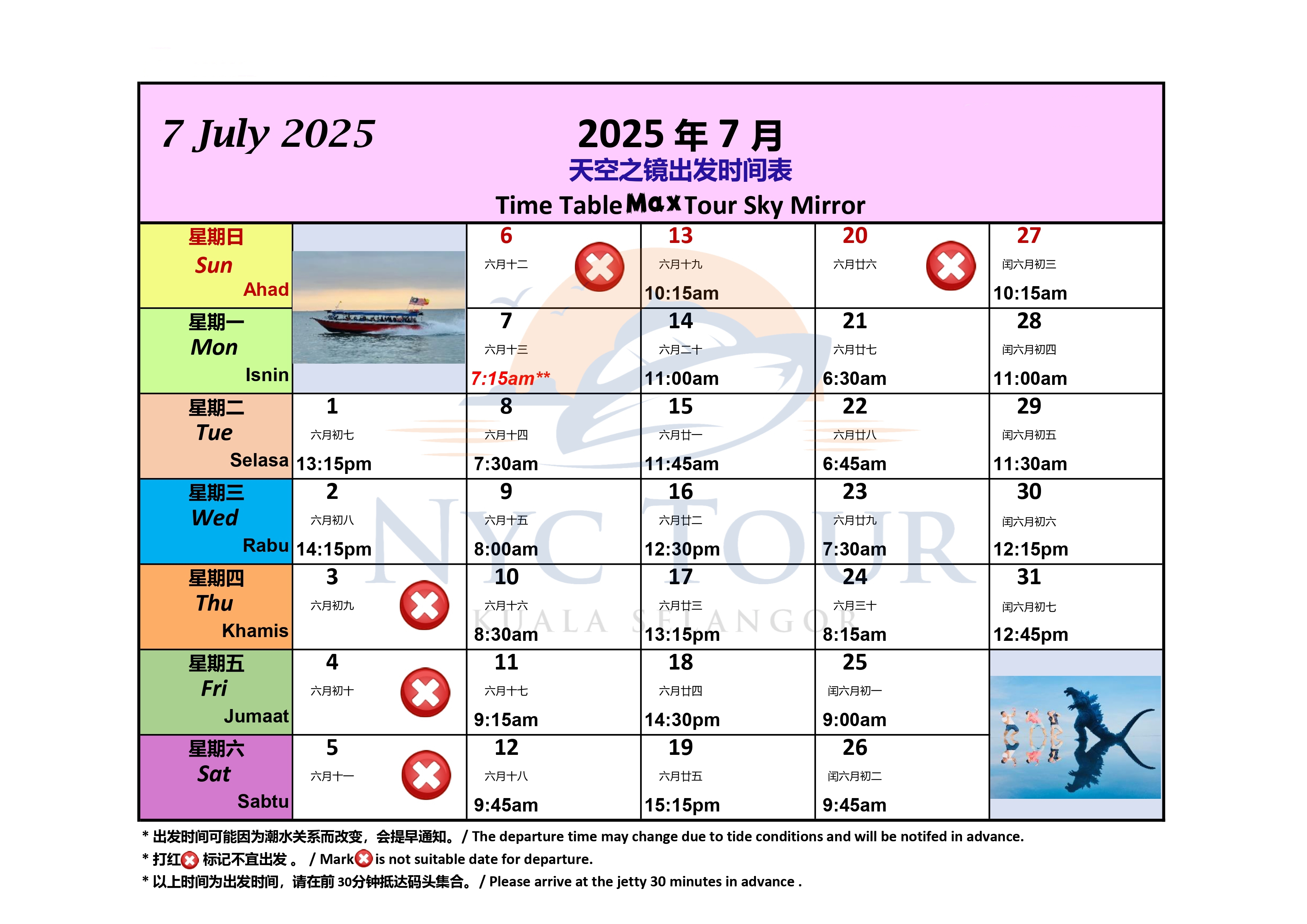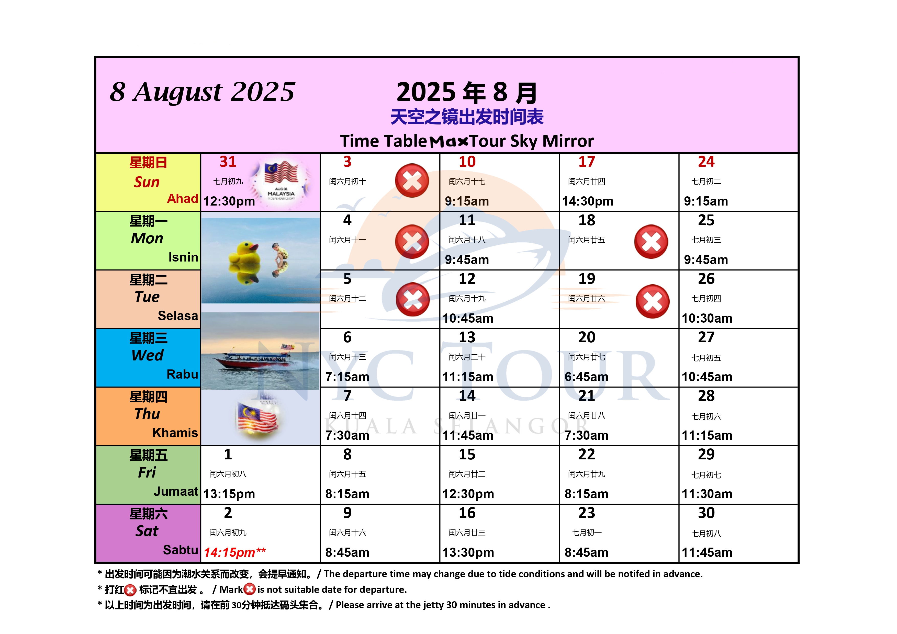 ‼️根据码头时间表出发时间11.00am前我们会赠送鱼米之乡适耕荘景点,11.01am后时间比较紧张就会跳过这个行程。