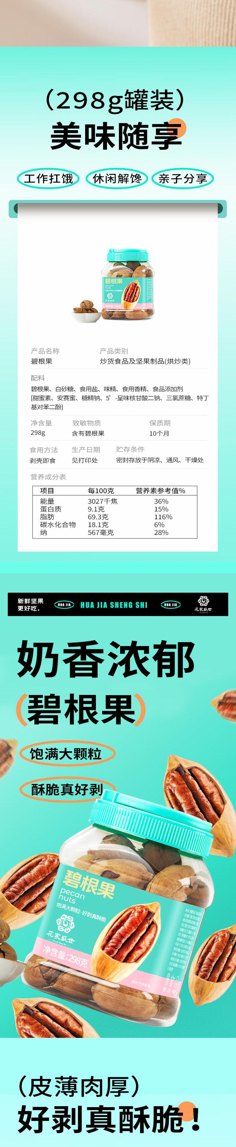花家盛世 碧根果298g多巴胺罐装新鲜健康美味 HJSSJG001