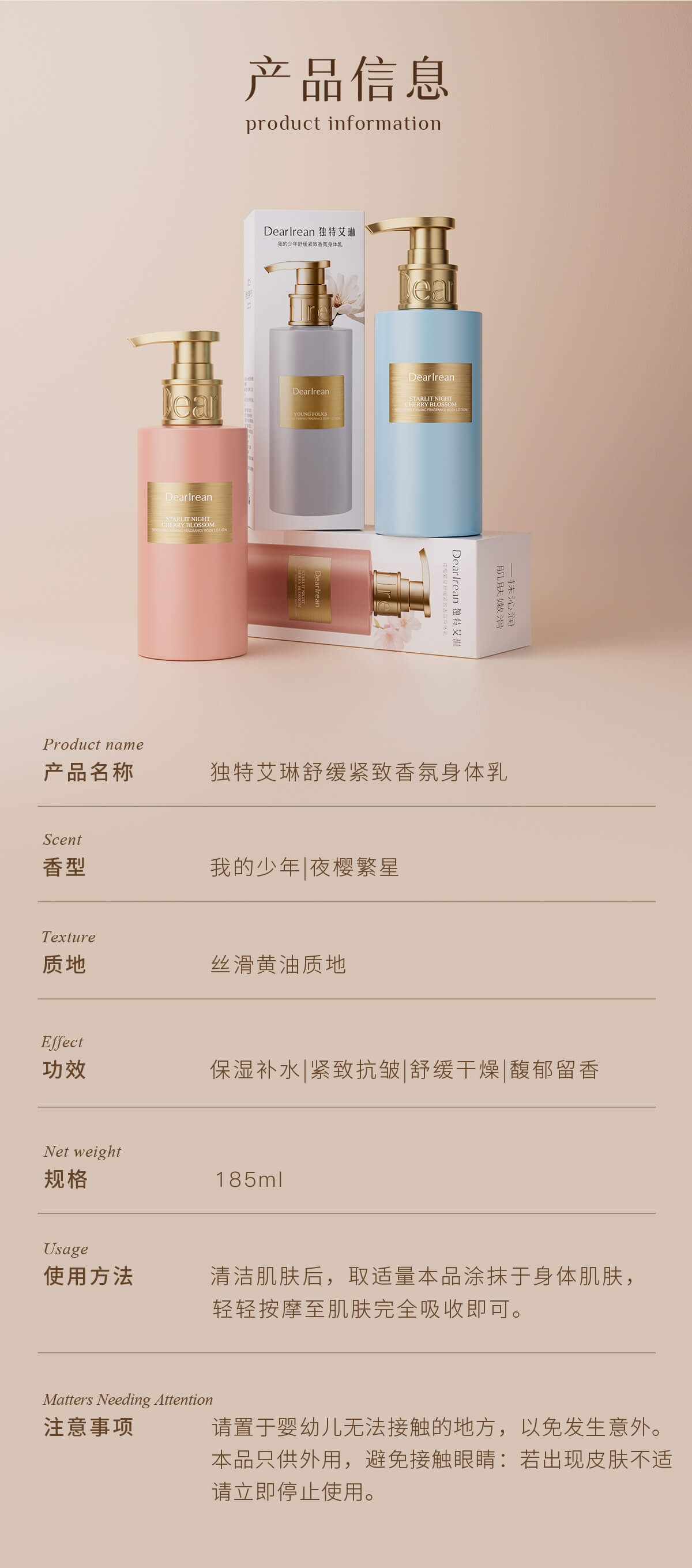 【现货速发】DearIrean 独特艾琳舒缓保湿紧致香氛身体乳185g