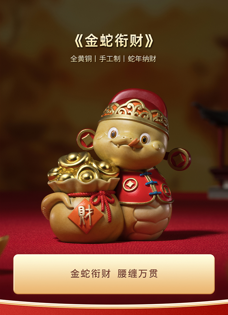 铜师傅《金蛇衔财》客厅桌面蛇年铜摆件 家居装饰品 蛇年吉祥物