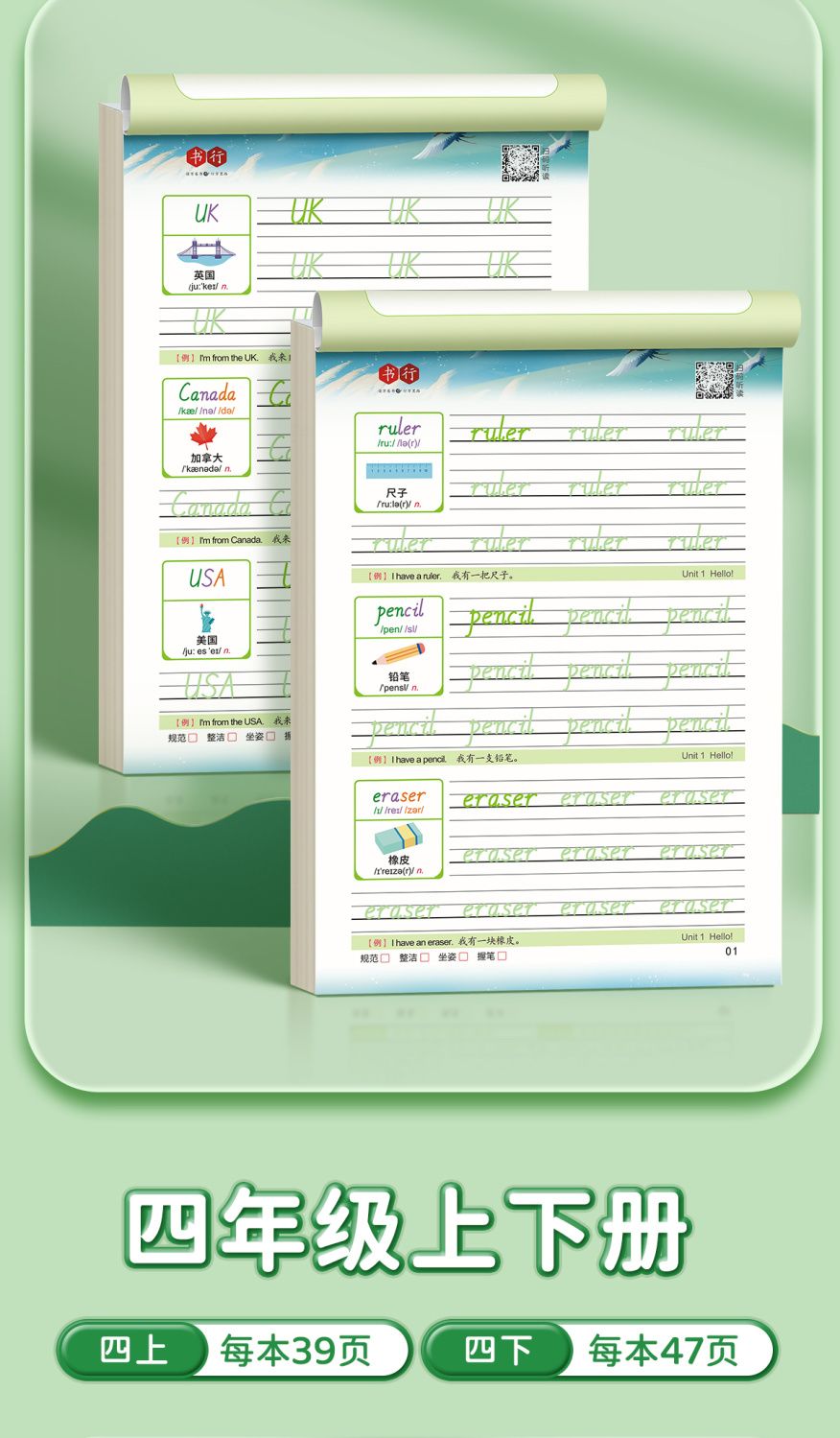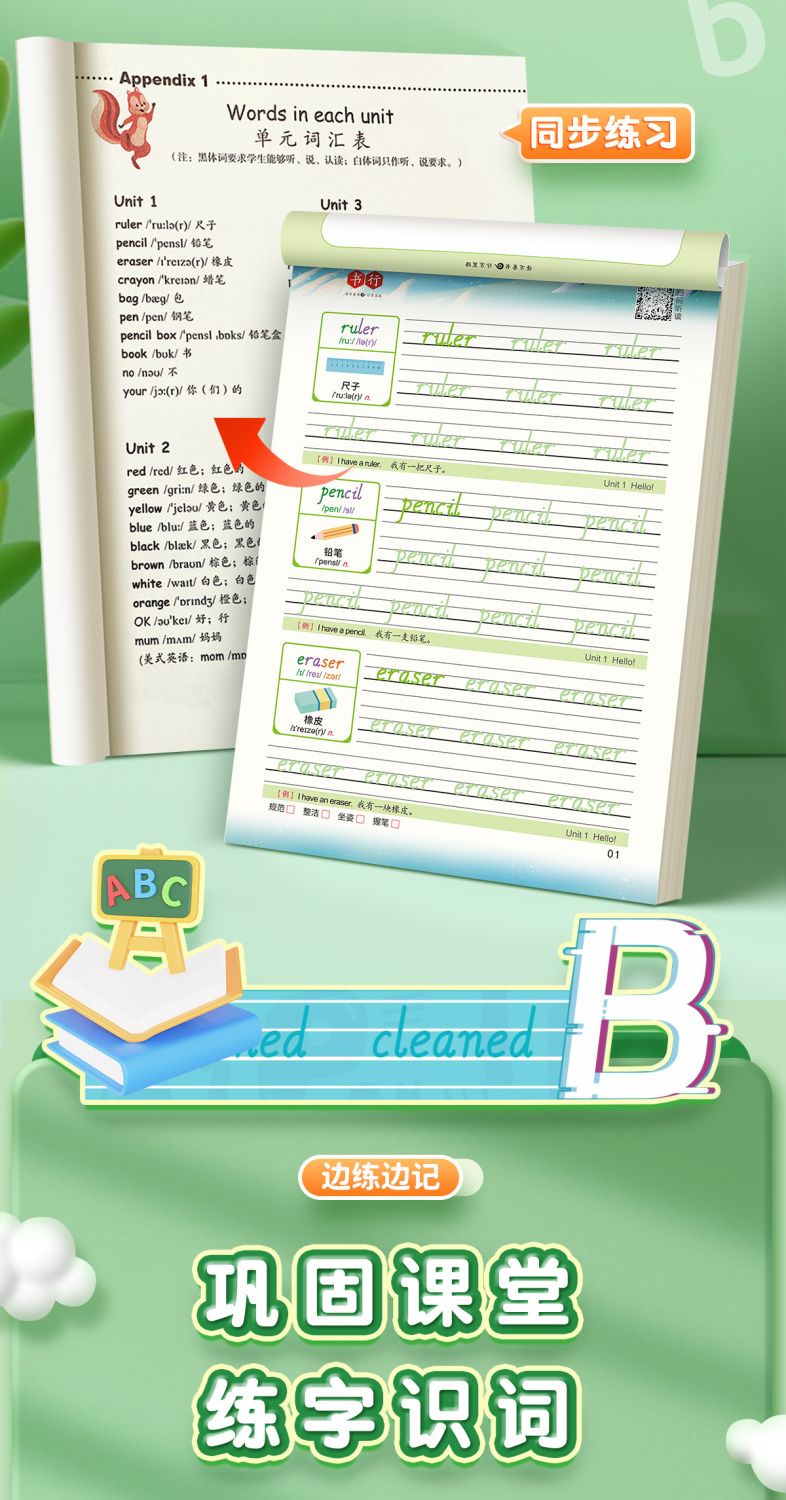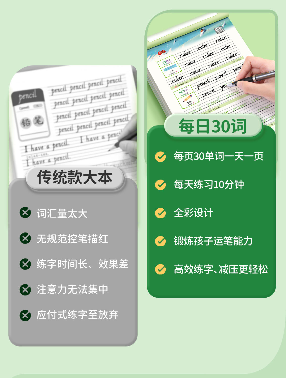 小学练字帖【英语每日30词+语文每日30字】同步课本减压练习描红本