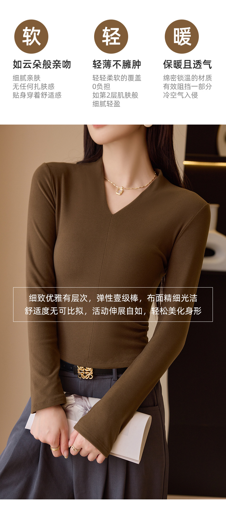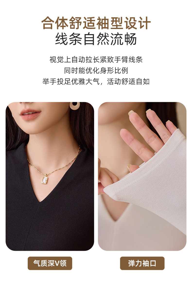 新款V领长袖打底衫气质修身显瘦可外穿设计感黑色打底上衣 商品图6