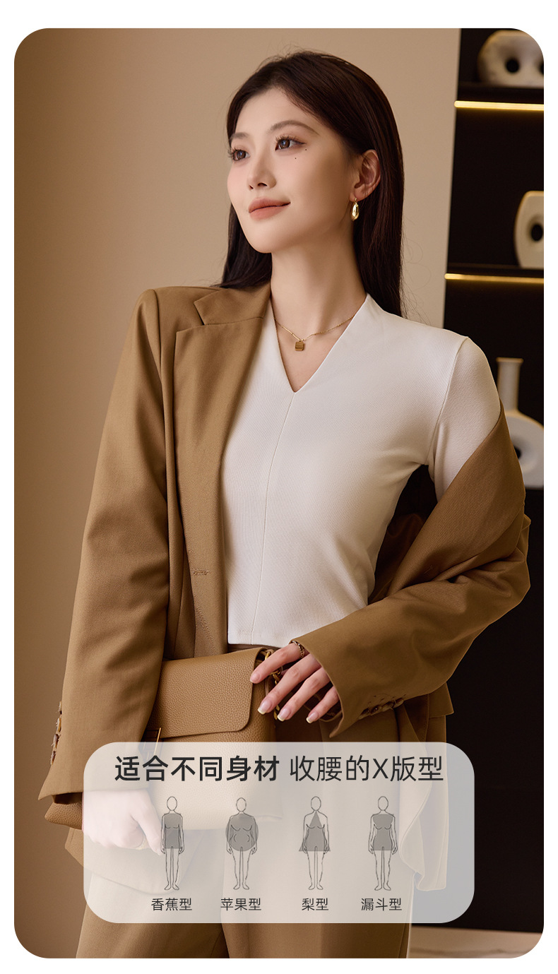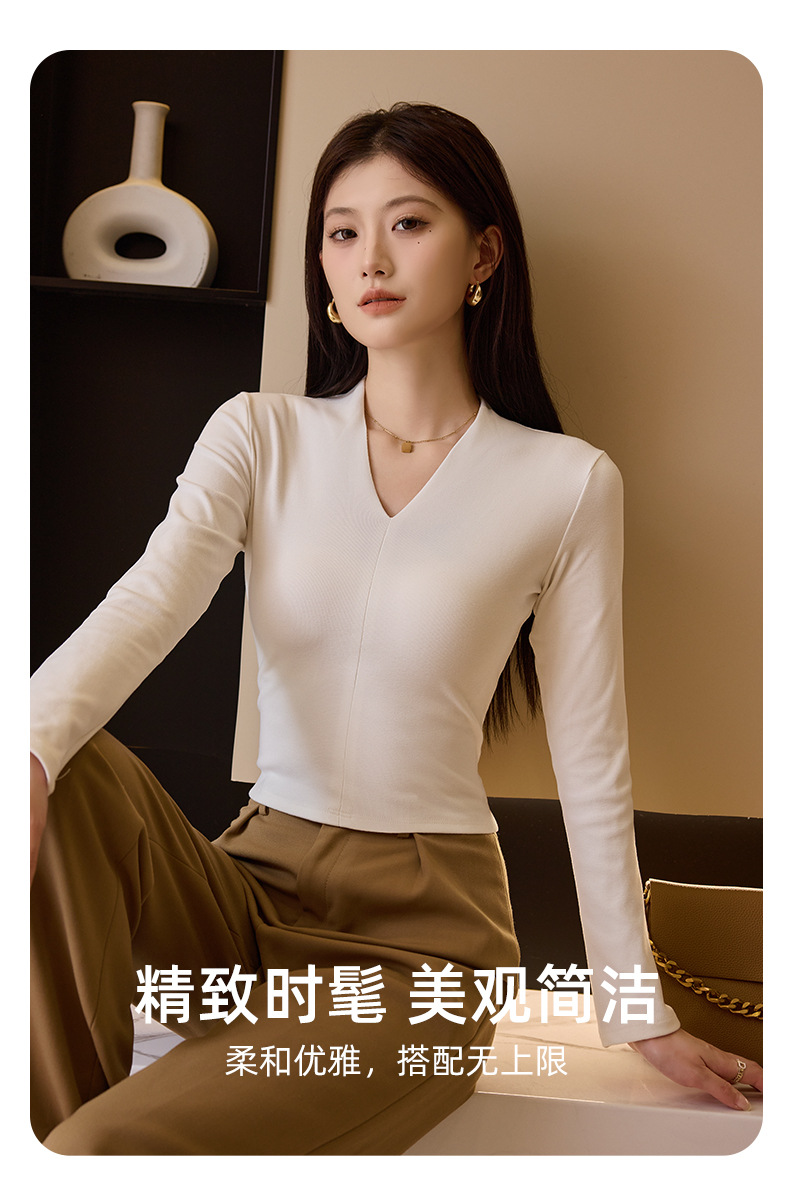 新款V领长袖打底衫气质修身显瘦可外穿设计感黑色打底上衣 商品图7