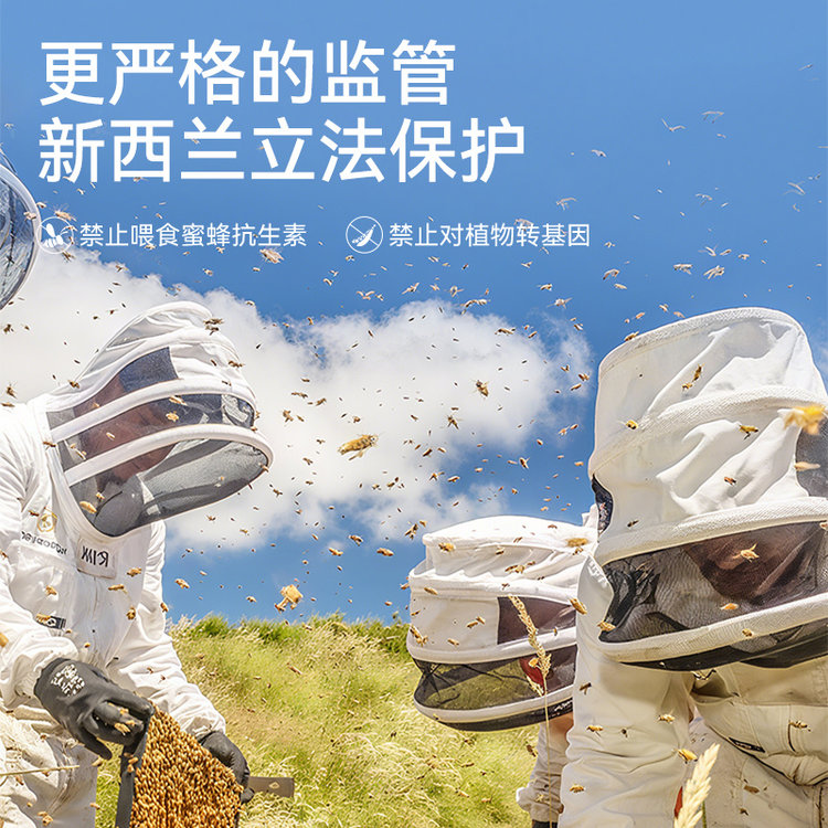 新西兰对食品的要求很严格,养蜂人遵循花期移动蜂箱,游牧养蜂,产品品质更高,自然蜂味,健康代糖。
