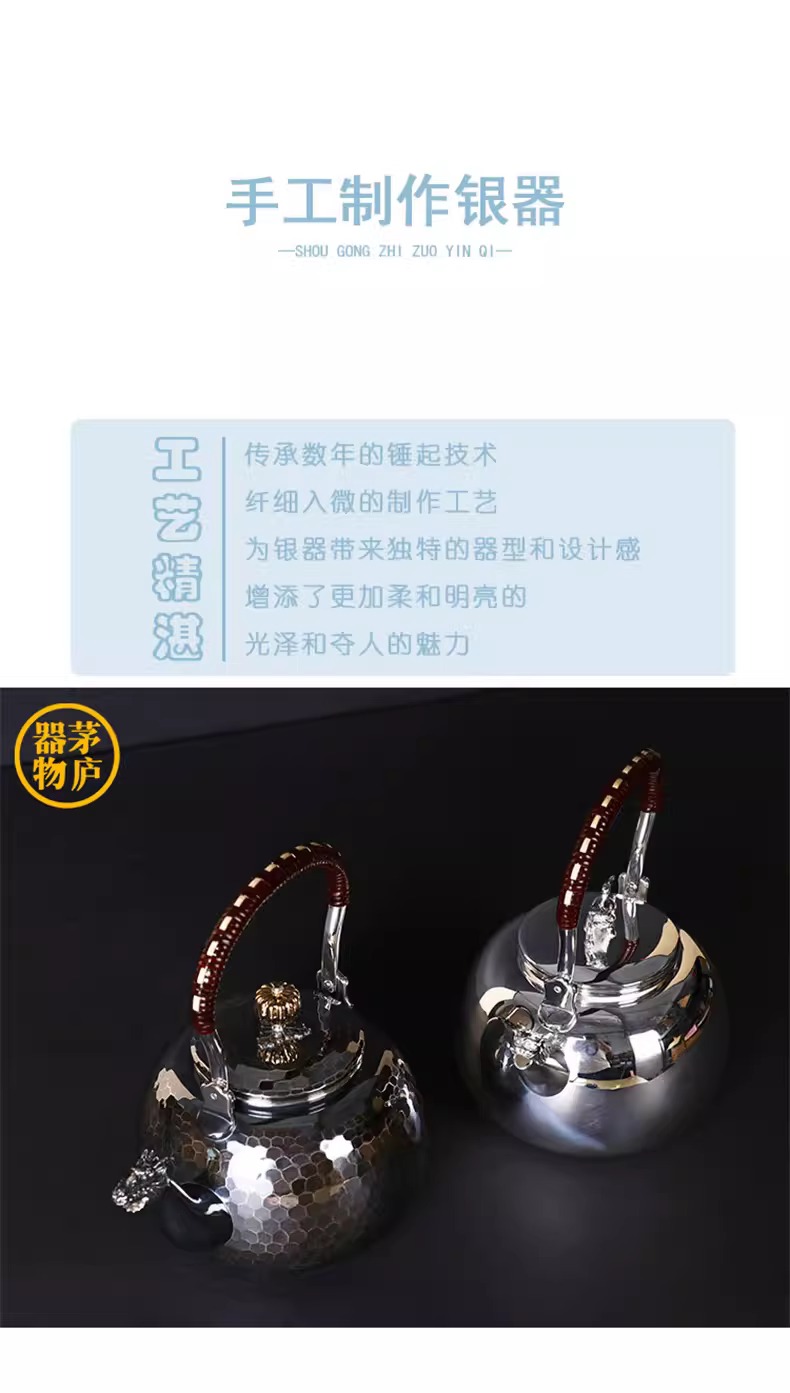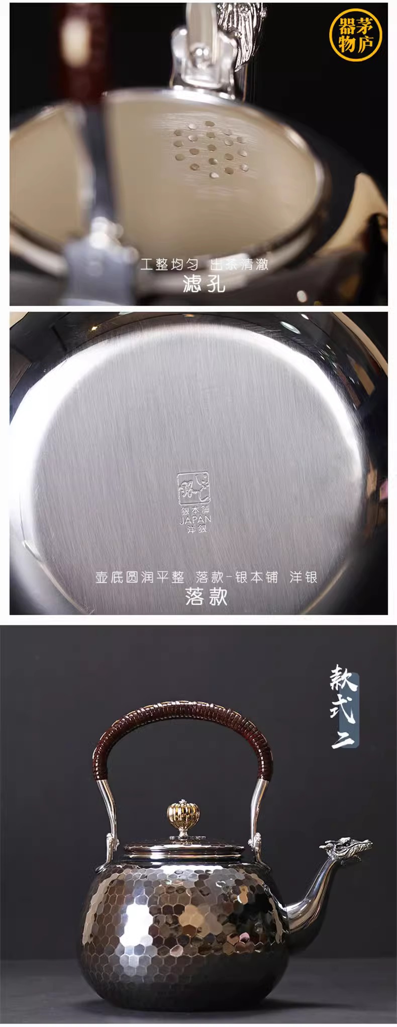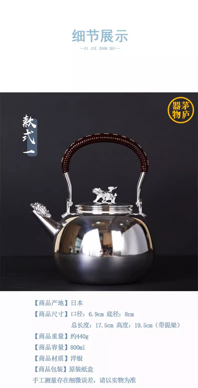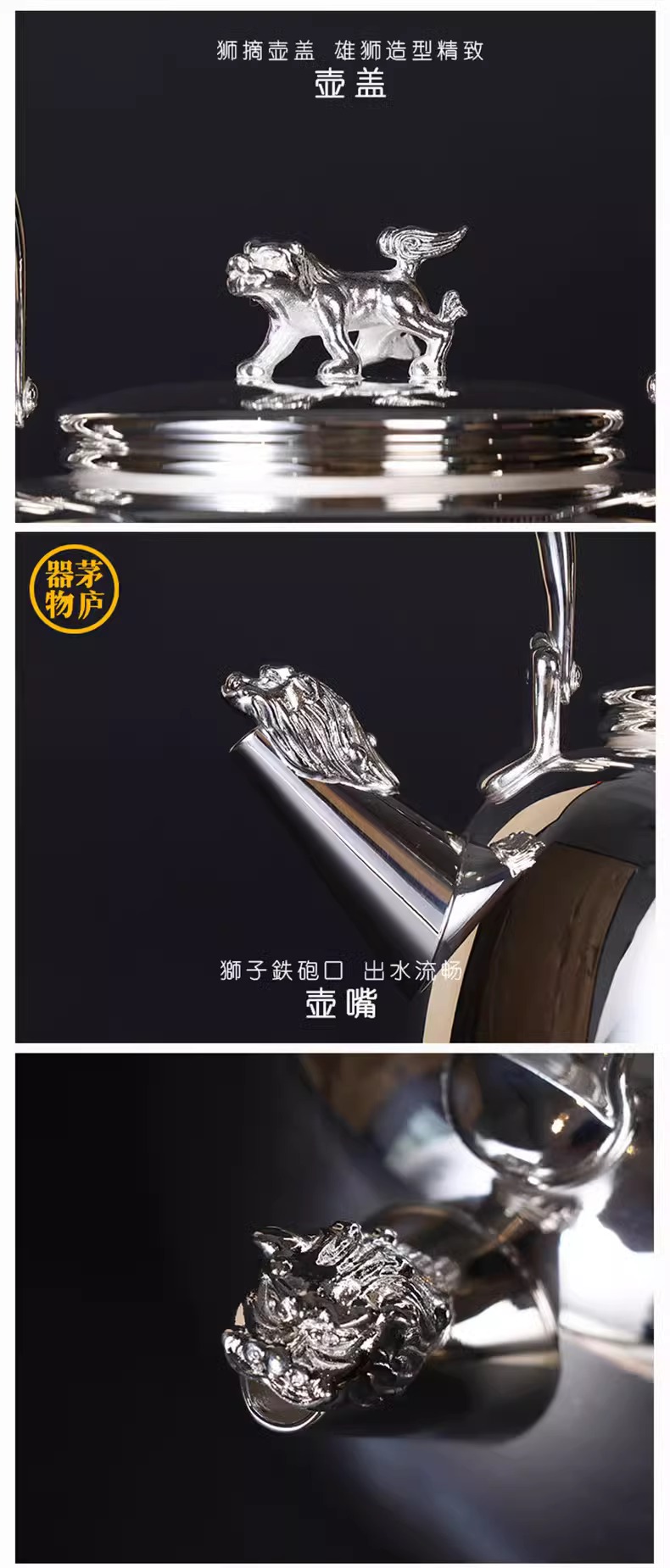 【样品3折捡漏,仅最后一个样品,无货退款】银本铺-狮子铁砲口無地狮摘壶 800ML(洋银款非纯银)