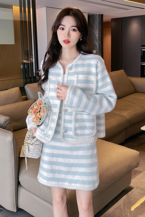 唐狮 圆领长袖小香风针织套装百搭淑女温柔甜美 21201