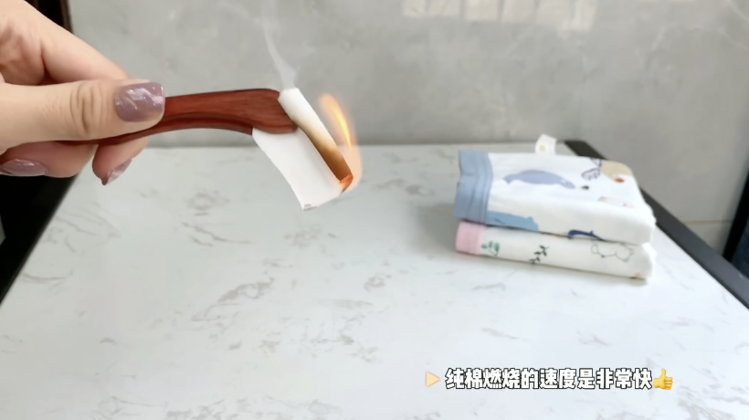 2⃣️纯棉面料🔥烧燃🔍测试: