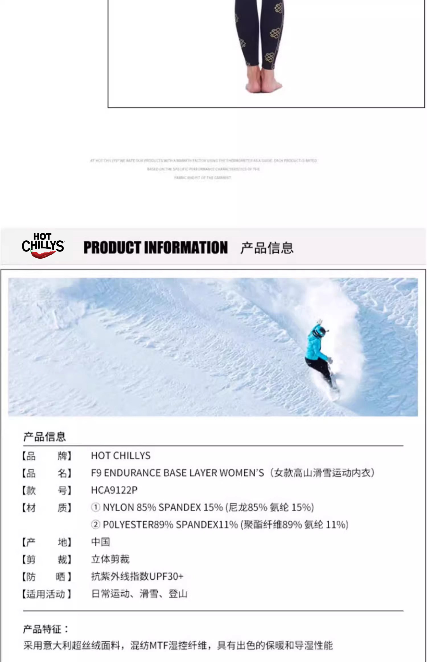 HOTCHILLYS热椒 F9女士登山滑雪保暖长裤抑菌排汗长裤 HCA9122P