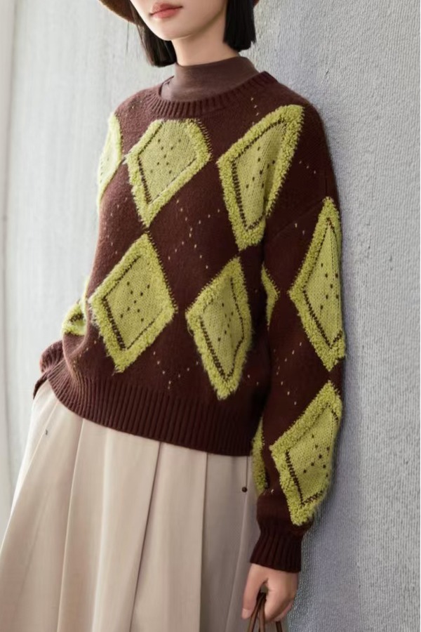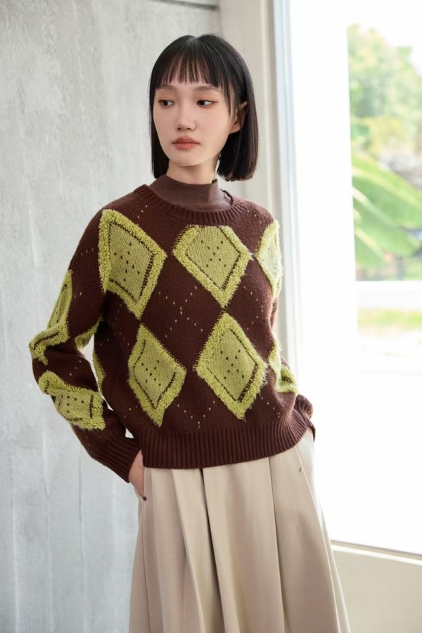 SIA SAYLOR 个性设计撞色菱格休闲毛衣 21127