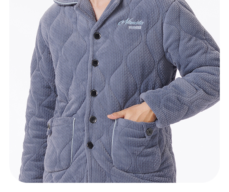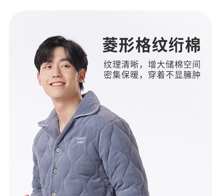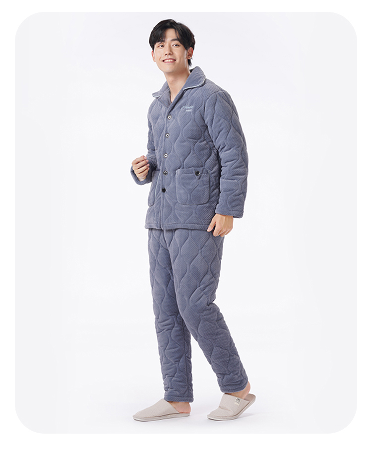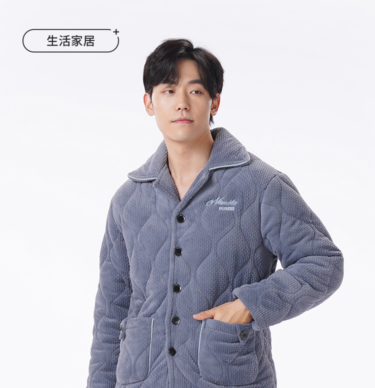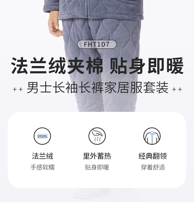 都市丽人都市锋尚睡衣夹棉系列长袖法兰绒烂花夹棉加厚男士加夹棉套装FHT1D7