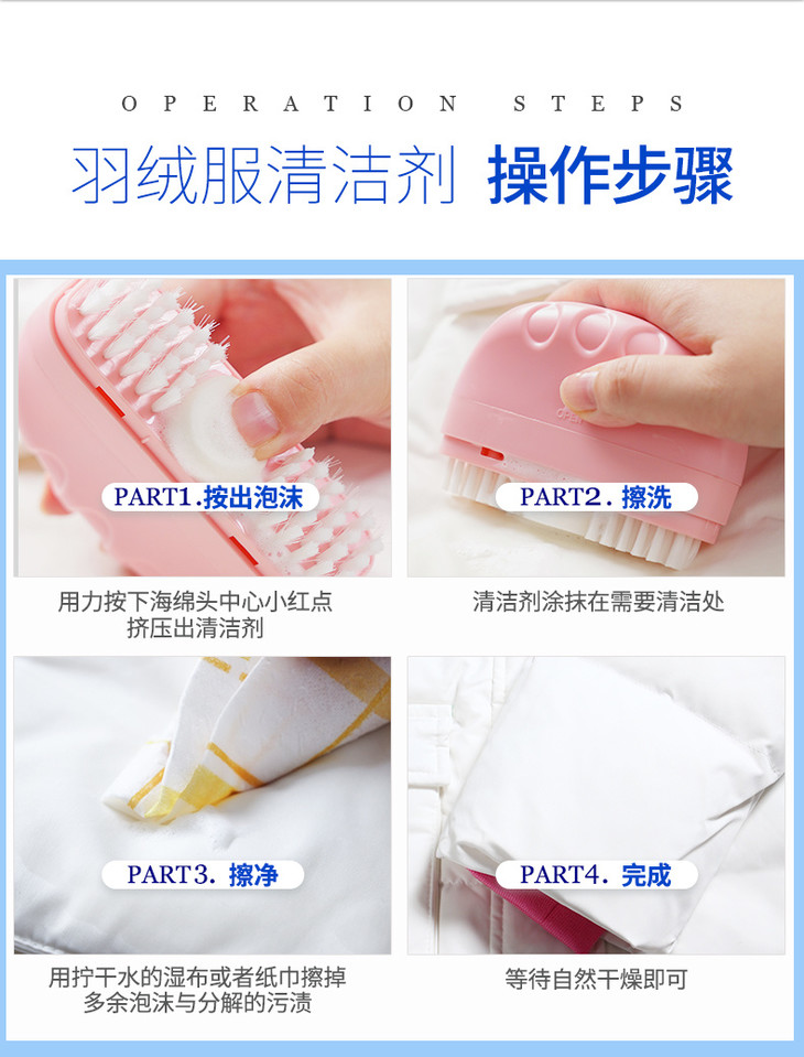 ✅免浸泡,一刷一擦,两步清洁羽绒服