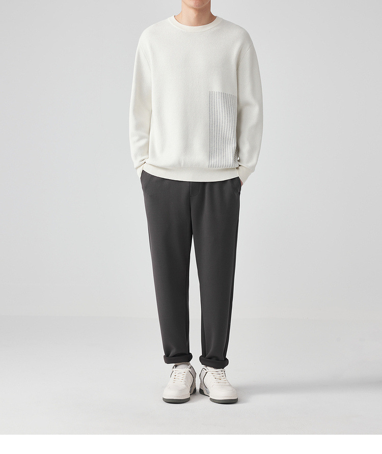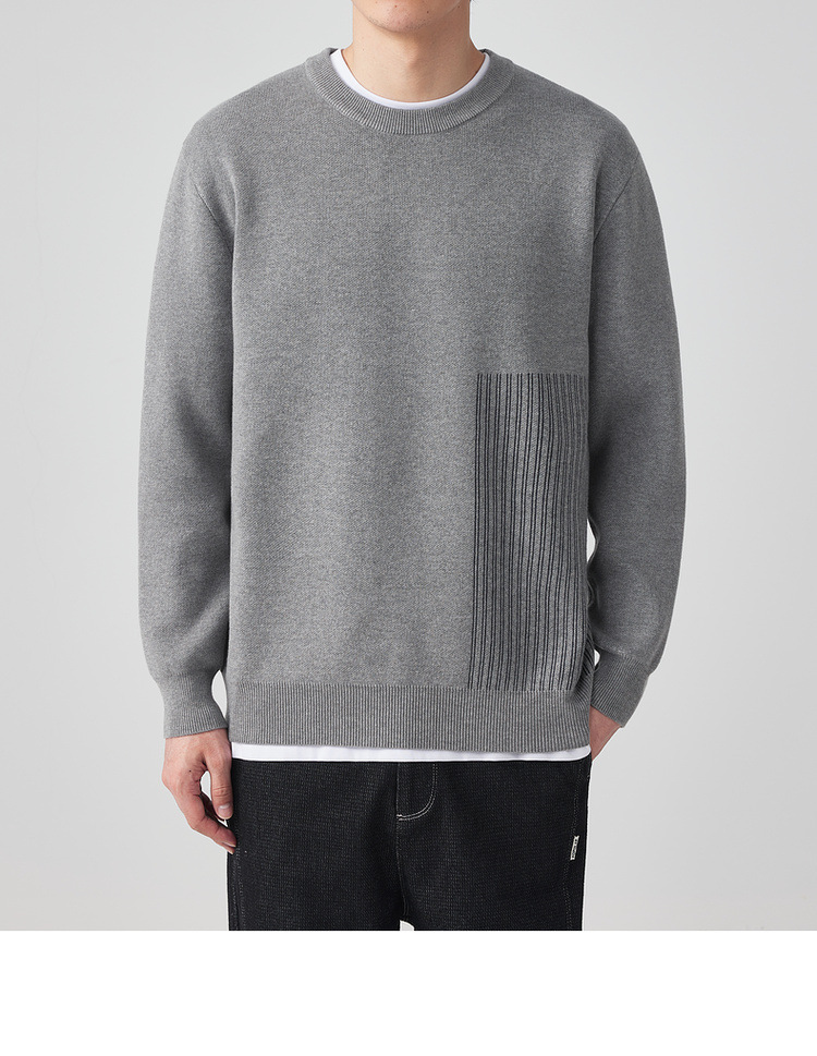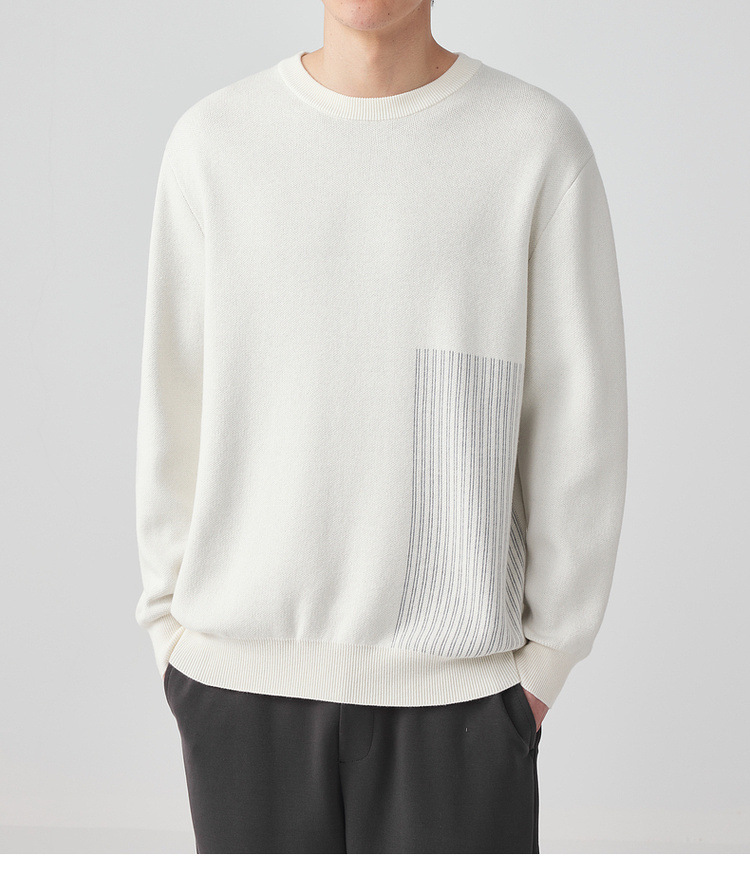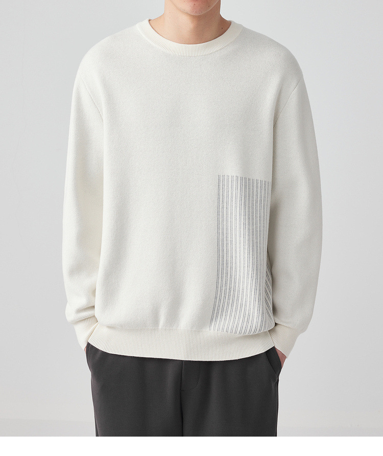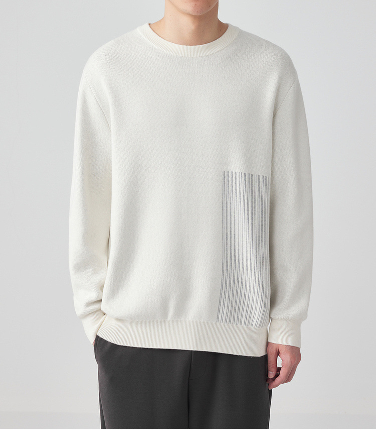 墨麦客男装条纹撞色针织衫男2024春新款圆领自发热男士毛衣20475
