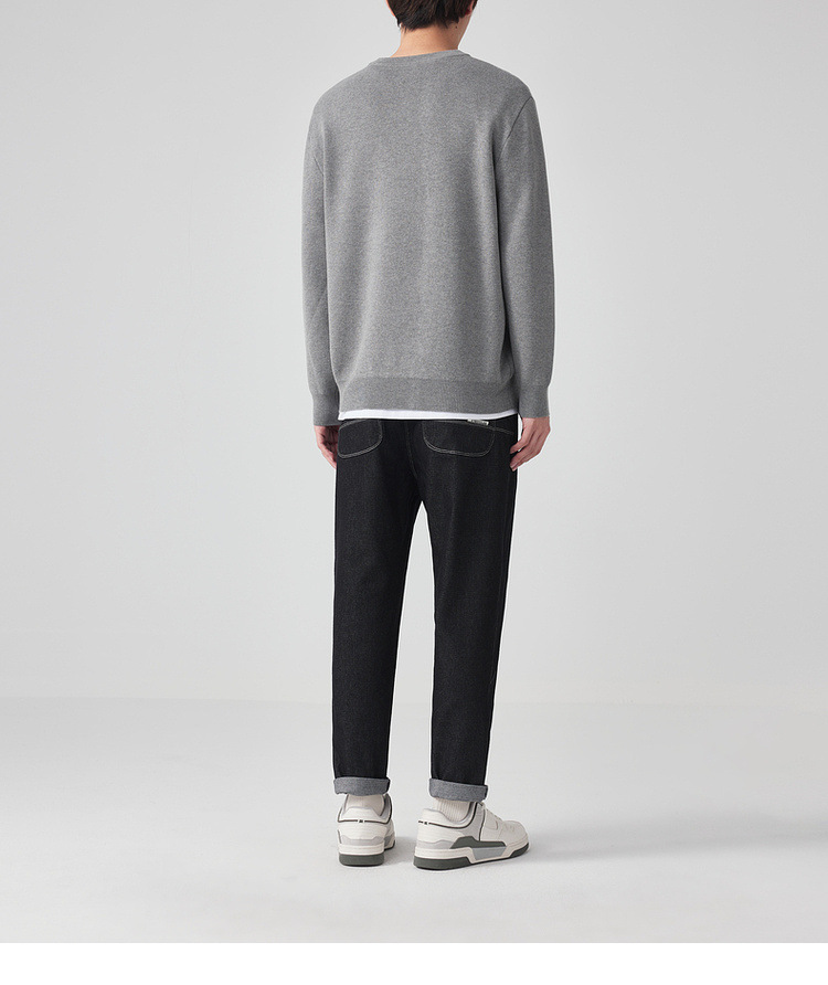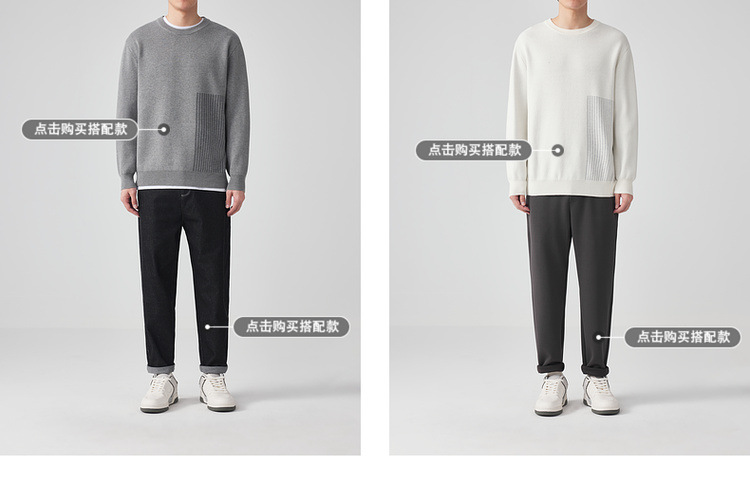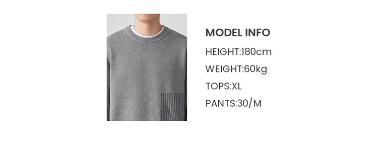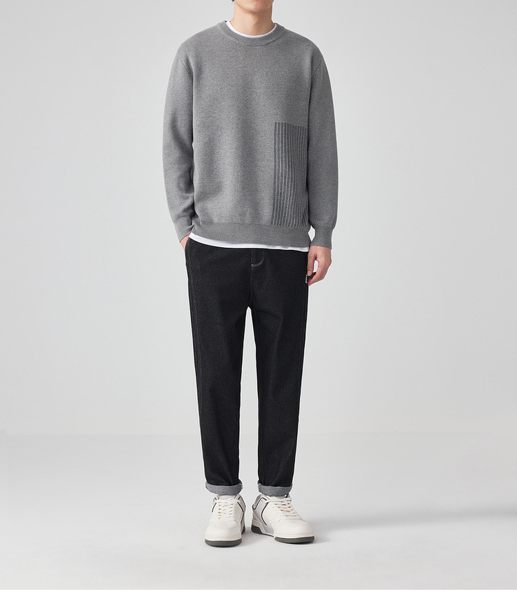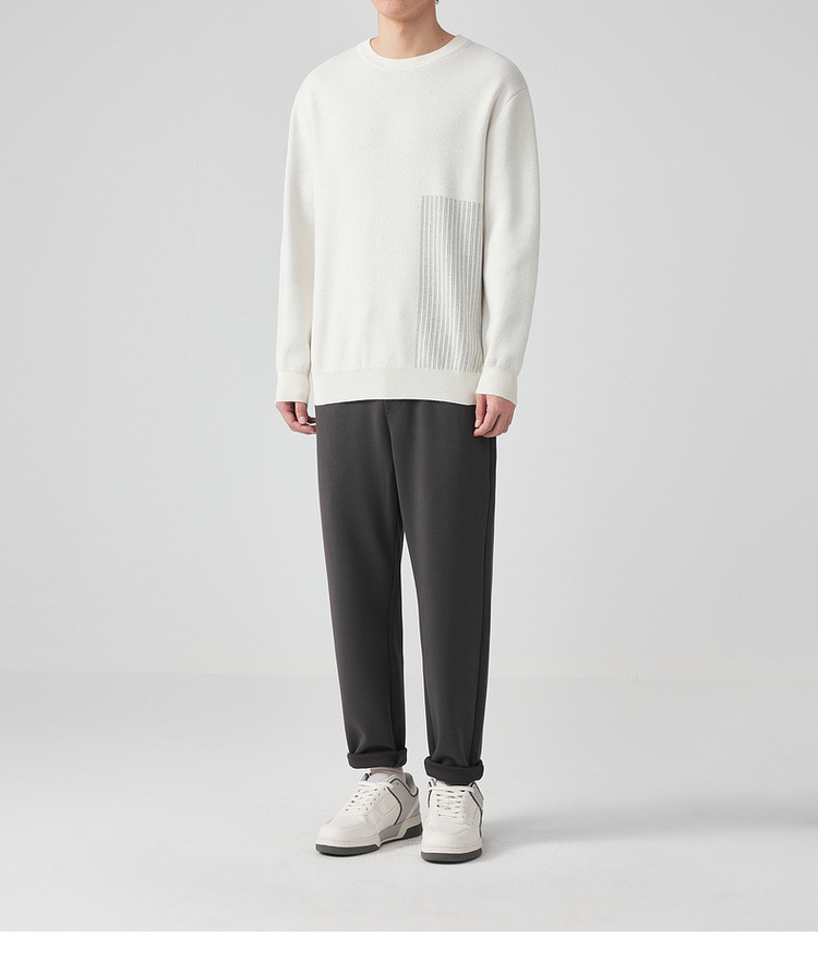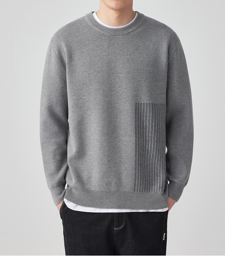 墨麦客男装条纹撞色针织衫男2024春新款圆领自发热男士毛衣20475