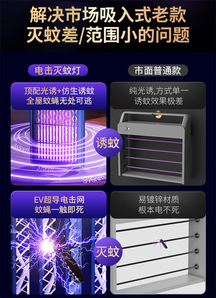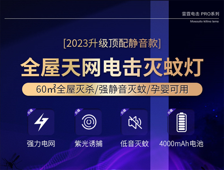 2023新款USB电击式挂壁灭蚊灯家用充电式灭蚊器户外LED电击诱蚊灯