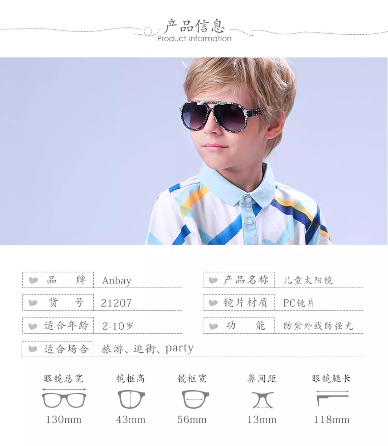 安比儿童墨镜潮时尚2岁+男宝宝太阳镜防紫外线防强光眼镜遮阳镜21207