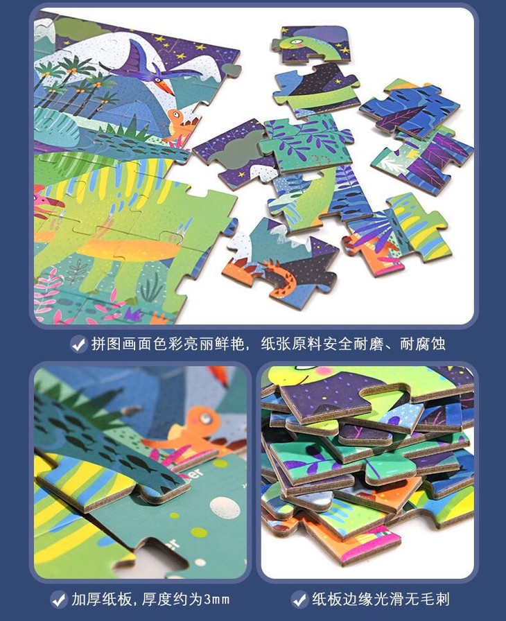 弥鹿mideer 儿童手提盒拼图-恐龙104PCS