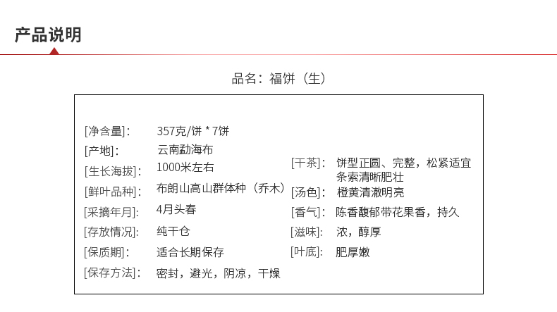 357克*7饼/提 口粮茶 福饼-普洱生茶饼茶