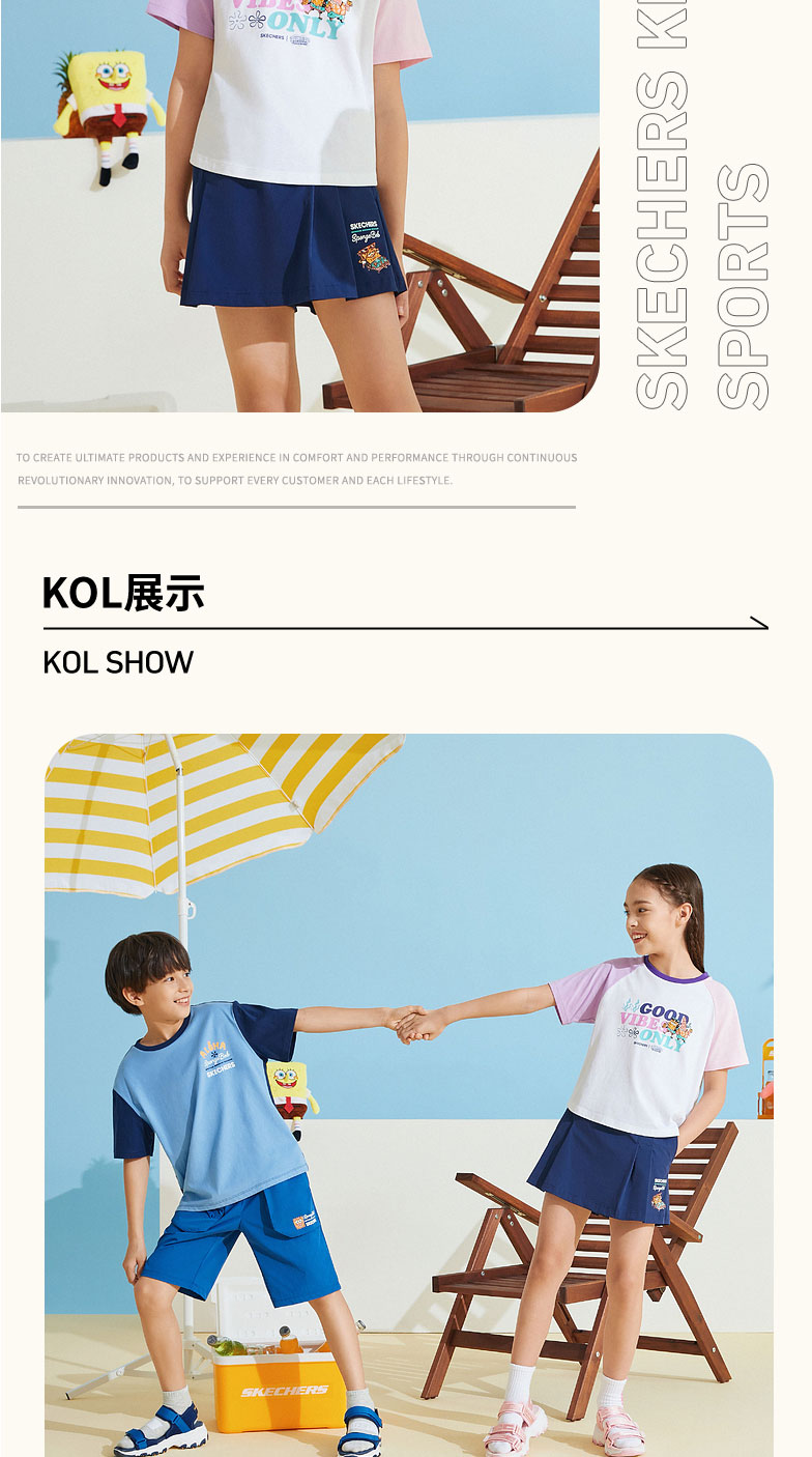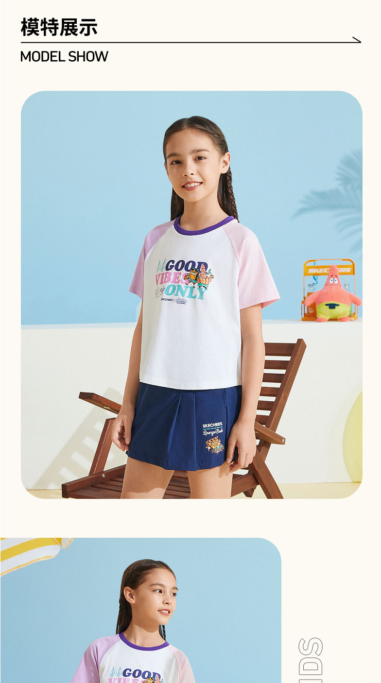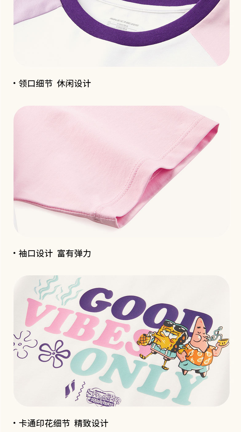 小斯凯奇【海绵宝宝联名】儿童T恤夏季新款女大童宽松插肩袖短袖L222G049