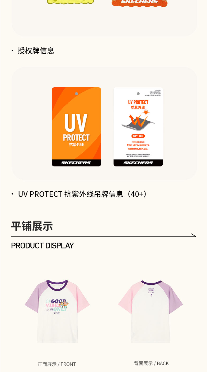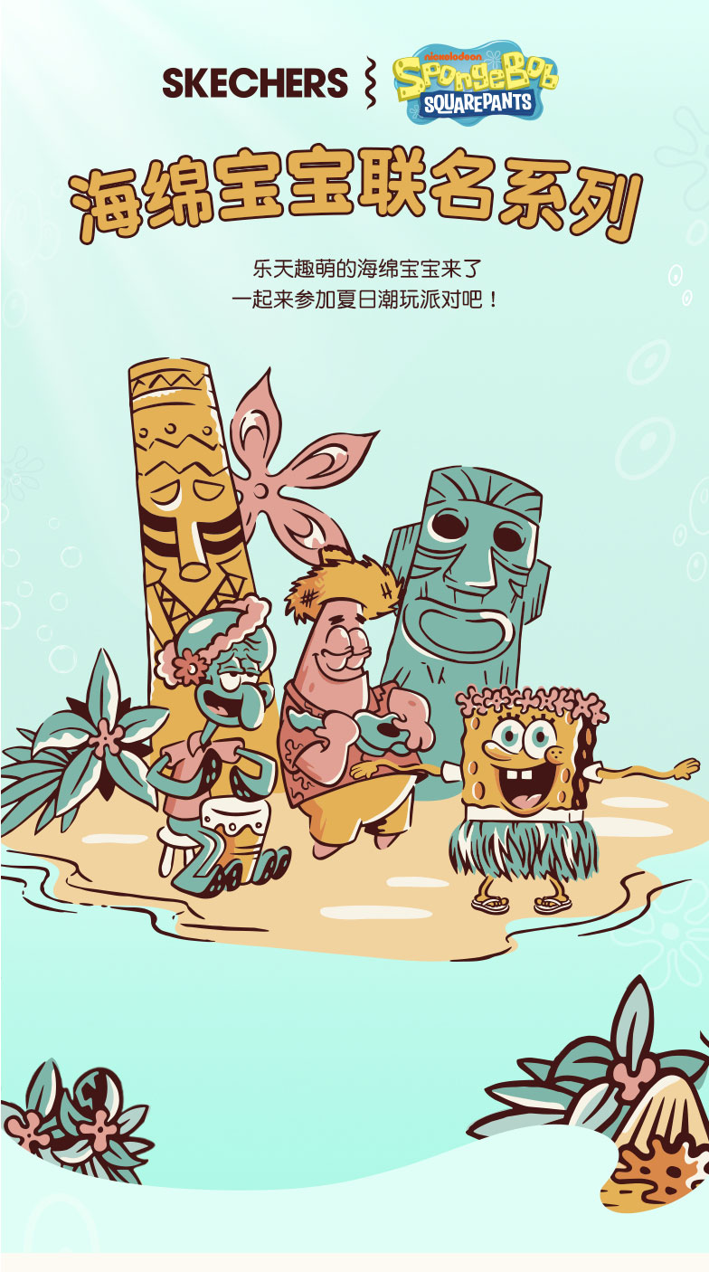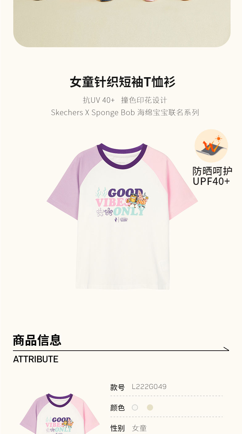 小斯凯奇【海绵宝宝联名】儿童T恤夏季新款女大童宽松插肩袖短袖L222G049