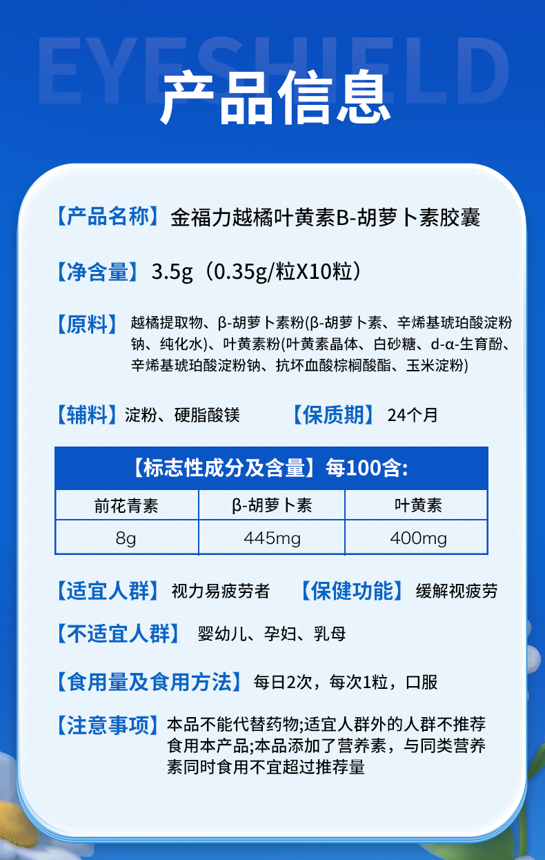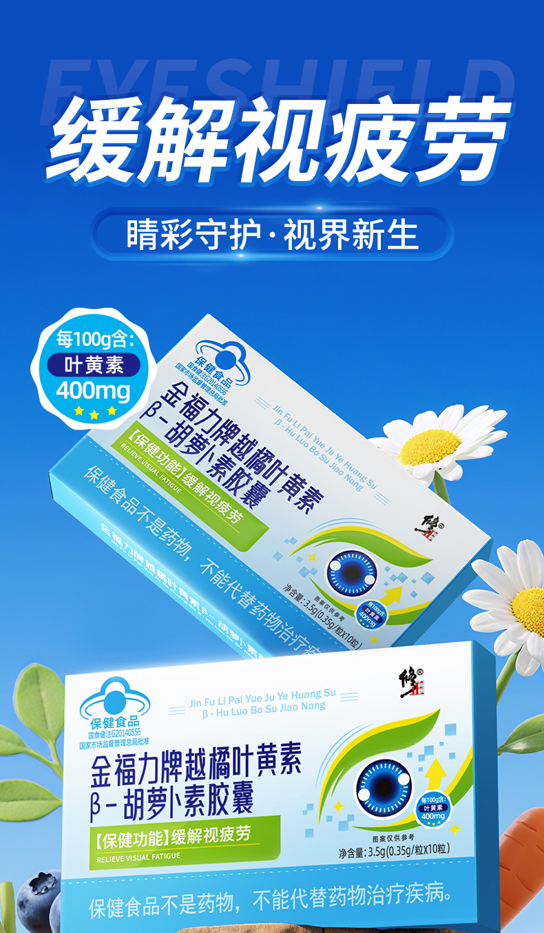 修正 金福力牌越橘叶黄素B-胡萝卜素胶囊 10粒/盒