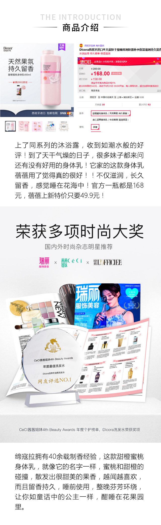 【1.17-1.25】西班牙蒂蔻拉甜橙蜜桃身体乳400ml