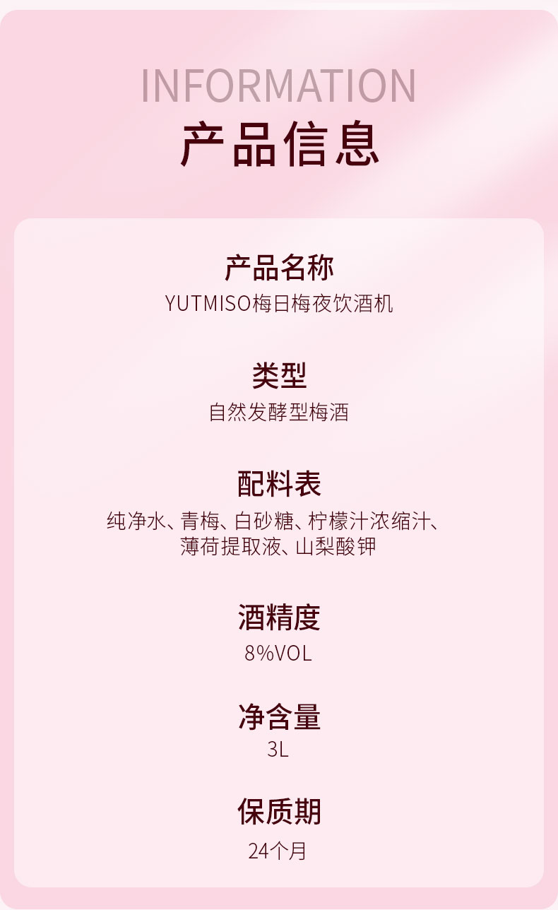 Yutmiso梅日梅夜3L装莫吉托风味饮酒机3L