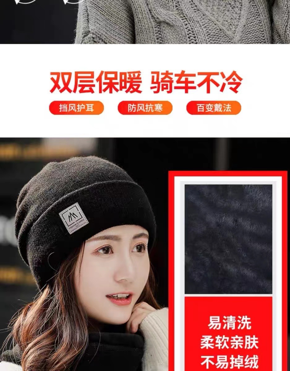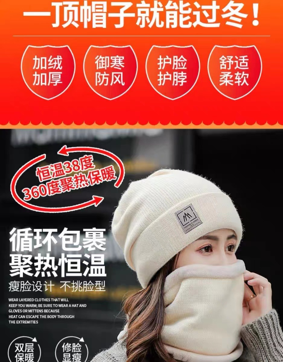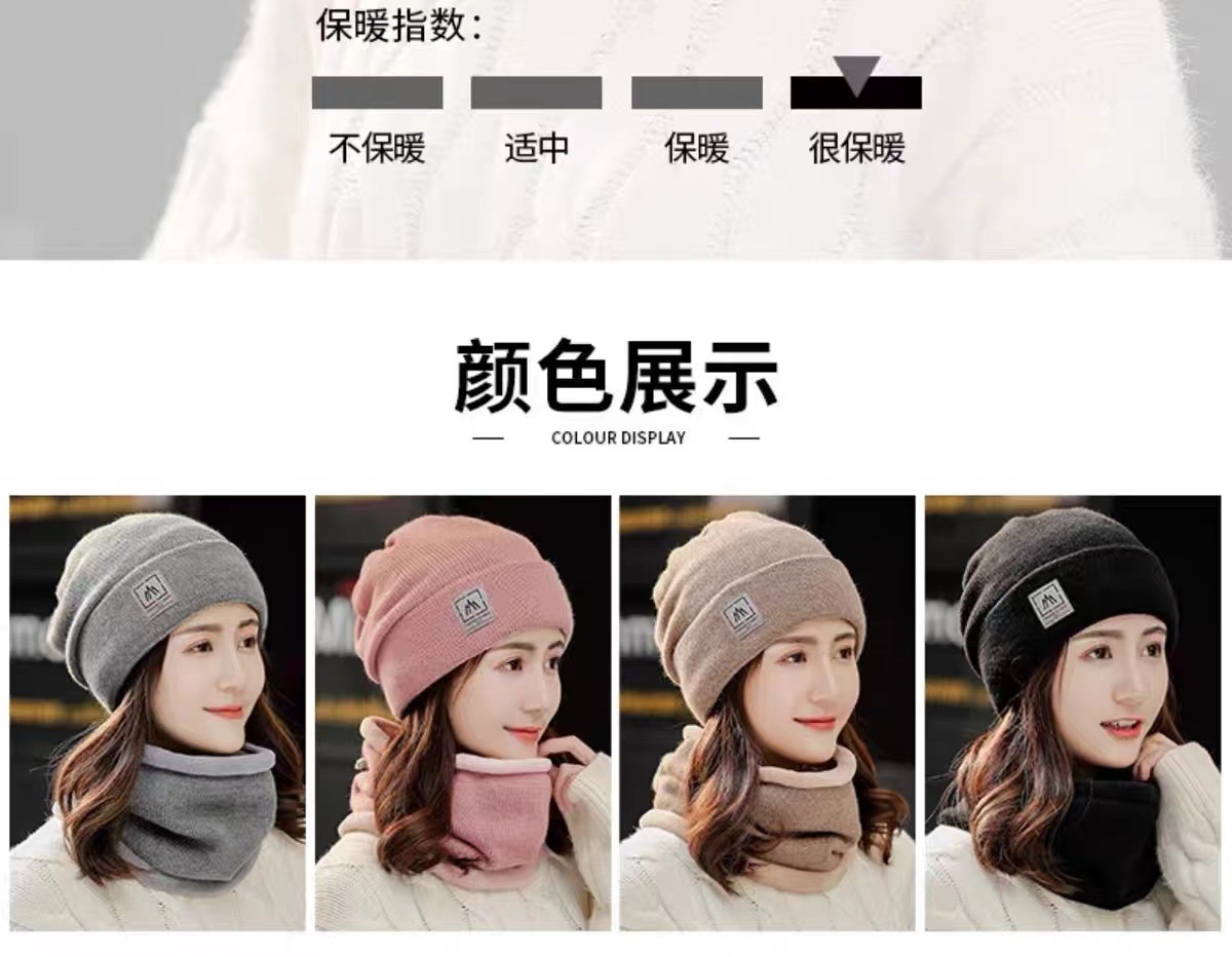 「帽子围脖两件套!数色可选」秋冬季毛线帽加绒保暖套装帽韩版防风护耳帽新款一体针织帽女配饰